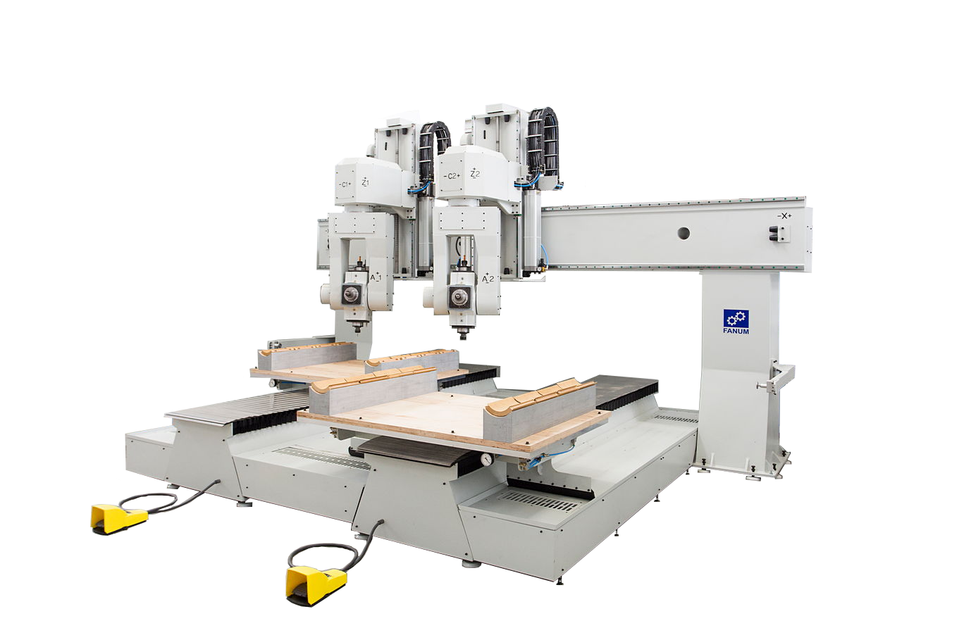 Pracująca z powodzeniem już od kilku miesięcy w innej wielkopolskiej fabryce mebli konstrukcja powstała również na bazie dobrze znanego już na rynku modelu Sigma. Nowa odmiana obrabiarki, nazwana „Dual”, jest wyposażona w dwa bliźniacze zespoły robocze, pracujące w systemie jednocześnie interpolowanych 5 osi. Konstrukcja ta została opracowana i sprawdzona w produkowanych już wcześniej, dwugłowicowych ciesielskich centrach obróbczych – Kappa. Obydwa zespoły robocze są wyposażone w zmodernizowane głowice rewolwerowe o dwóch osiach obrotowych i czterech elektrowrzecionach z łożyskami ceramicznymi i szybkością obrotową do 24000 obr./min każde. Maszyna posiada również dwa stoły robocze, pracujące w sposób naprzemienny. Na specjalne życzenie kupującego, maszyna została wyposażona w bardzo ciche i łatwe w eksploatacji eżektorowe pompy podciśnieniowe produkcji firmy PIAB. Do sterowania maszyny został użyty, standardowo stosowany we wszystkich centrach obróbczych Fanum, bardzo wydajny sterownik CNC włoskiej marki OSAI.