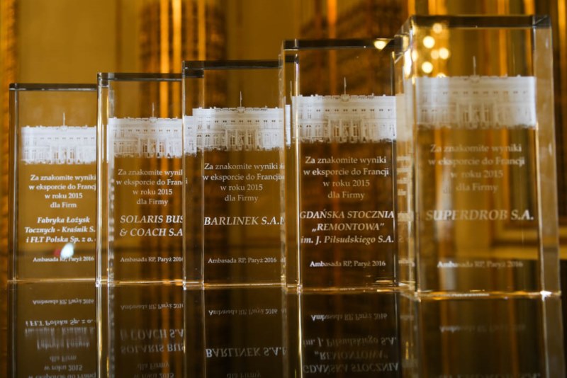 Nagrodą Mateusza Morawieckiego, Wicepremiera i Ministra Rozwoju, Witolda Waszczykowskiego, Ministra Spraw Zagranicznych oraz Ambasady RP we Francji nasza firma została odznaczona 13 września 2016 roku na uroczystej gali w Ambasadzie RP.