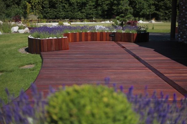 Taras jest wyjątkową częścią przydomowej przestrzeni, która wymaga szczególnej oprawy. Ważne jest, aby jego estetyka była spójna z bryłą budynku i podkreślała jego styl. Jednocześnie miejsce to powinno tworzyć przyjazną atmosferę, która będzie sprzyjała wypoczynkowi oraz towarzyskim spotkaniom. Najnowsze deski tarasowe DLH Poland z afrykańskiego Mukulungu doskonale komponują się z nowoczesną architekturą i sprawiają, że zyskuje ona wyrazisty, egzotyczny charakter. Intensywny odcień gorącej czerwieni drewna przywodzi na myśl zachód afrykańskiego słońca i nadaje przestrzeni ciepłego wyrazu. Dzięki niej taras zyskuje energetyczną aurę, która sprzyja dobremu samopoczuciu i zachęca do spędzania na nim wolnego czasu nawet w pochmurny dzień. Mukulungu, podobnie jak inne gatunki drewna, ulega patynowaniu, podczas którego powierzchnia desek pokrywa się srebrzystą powłoką. Jest to naturalny proces, który nie ma żadnego wpływu na właściwości fizyczne drewna. Wskutek jego działania deski nabierają szlachetnego wyrazu, co jest szczególnie cenną zaletą w niektórych stylach aranżacyjnych. Jeżeli patynowana powierzchnia nie jest pożądanym efektem, wystarczy zabezpieczyć deski olejem do drewna egzotycznego. Wówczas zachowają one swój naturalny, ognisty kolor.