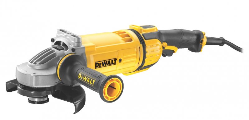 Duże szlifierki kątowe marki DeWALT wyposażone są w nowoczesny, odporny na przeciążenia silnik o mocy 2400 lub 2600 W oraz tarcze o średnicy od 180 do 230 mm. Elektronarzędzia posiadają zintegrowany system wyrzucania pyłu zapobiegający zatarciom silnika i innym uszkodzeniom. Boczna rękojeść zwiększa komfort pracy, a antywibracyjny uchwyt chroni użytkownika przed negatywnym wpływem drgań. Dodatkowo szlifierka DeWALT DWE4599 jest wyposażona w samoczynny stabilizator, który ogranicza poziom wibracji podczas pracy do 4,5 m/s2. DeWALT zadbał również o bezpieczeństwo użytkowników, montując wyłącznik odcinający. Zapobiega on samoczynnemu uruchomieniu maszyny w przypadku zaniku napięcia. Kolejnym udogodnieniem jest blokada wrzeciona, która pozwala na szybką i łatwą wymianę tarcz. W skład standardowego wyposażenia dużych szlifierek kątowych DeWALT wchodzą: wewnętrzny i zewnętrzny kołnierz mocujący tarcze, beznarzędziowa osłona ochronna oraz klucz do tarcz.