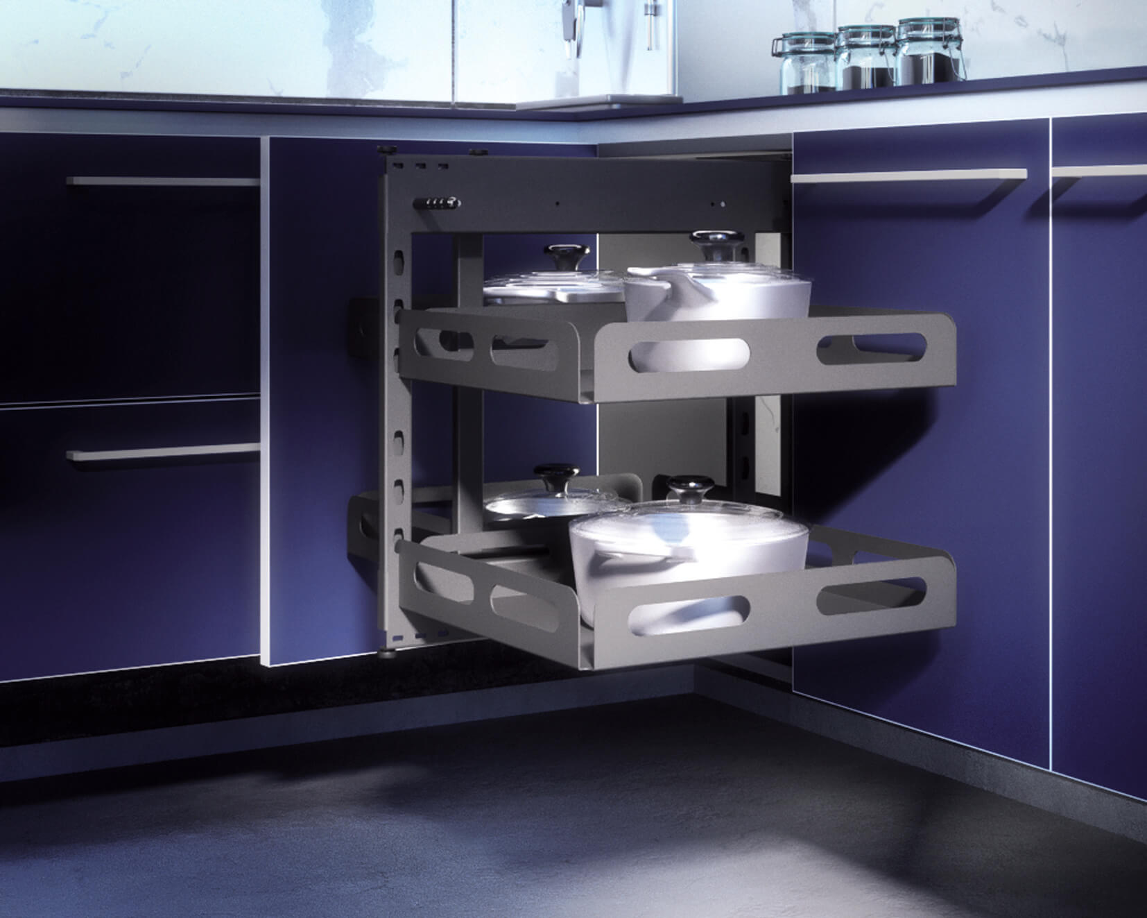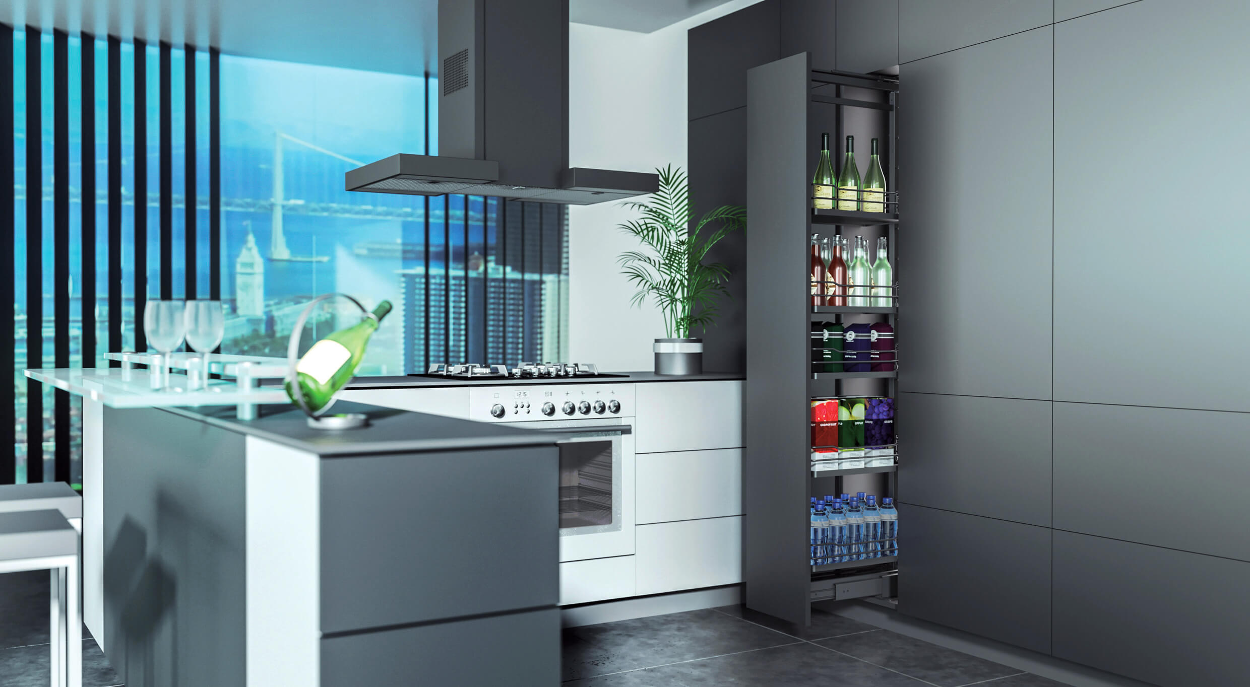 Kolor antracyt został wprowadzony na podstawie dokładnej analizy aktualnych i prognozowanych trendów. Nowa oferta jest kwintesencją posiadanego przez Nomet doświadczenia w produkcji oraz wiedzy na temat strefy przechowywania w kuchni. Szeroki zakres dostępnych produktów z tej serii umożliwia kompletne wyposażenie praktycznie każdego zestawu mebli kuchennych. Te eleganckie cargo są bardzo zaawansowane technicznie, system mechanizmów jezdnych zapewnia bezszelestne otwieranie i zamykanie szafek oraz pełny i swobodny dostęp do ich zawartości. Dzięki nim szafki stają się bardziej mobilne i przyjaźniejsze w użytkowaniu.
