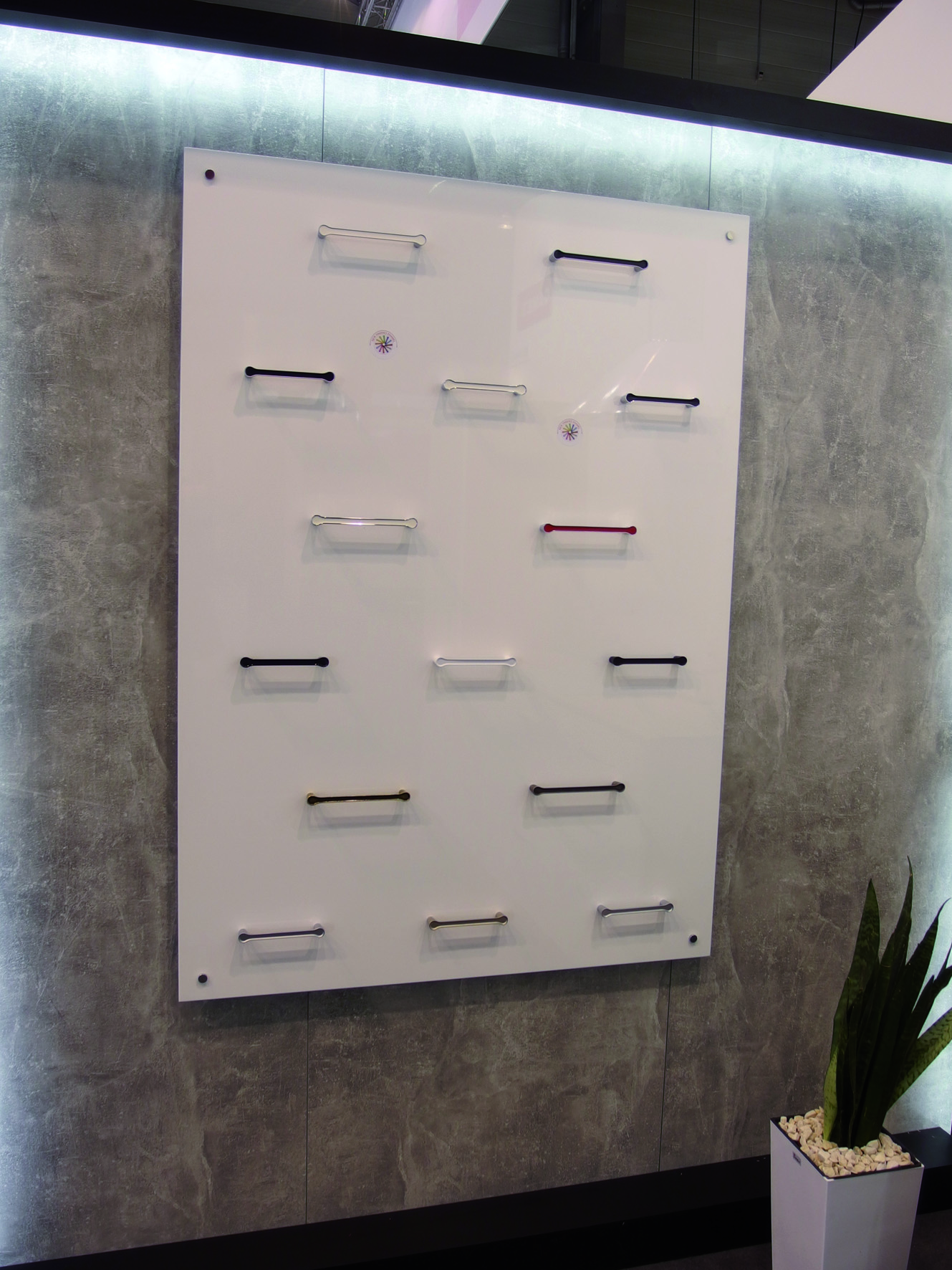 Na stoisku nie mogło zabraknąć także dobrze rozpoznawalnej kolekcji Cameleon, w której uchwyty UU06 i UU07 prezentowane były w pełnej palecie barw. W ramach Modular System pokazywane były także uchwyty UA84 i UA85 oraz kolekcja Puzzle pozwalająca na kreatywne aranżowanie uchwytów na meblach.