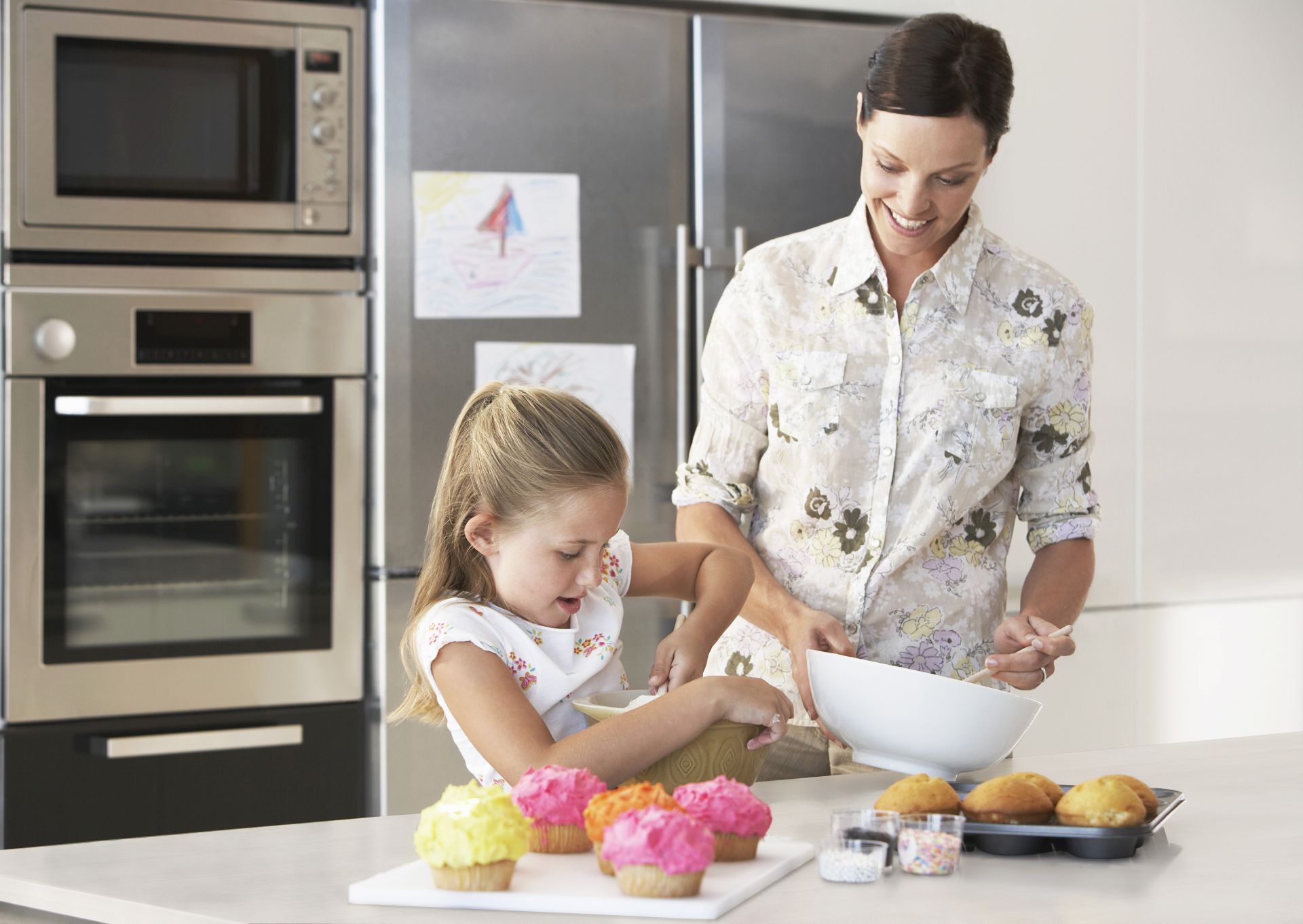 - Smiling woman and little girl cooking — Image by © Eric Audras/Onoky/Corbis