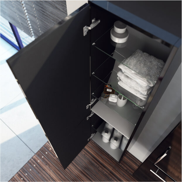 Już na etapie planowania rozkładu łazienki warto się zastanowić, jak zorganizować miejsce na przechowywanie brudnej bielizny. Zdecydowanie lepszym rozwiązaniem od wolnostojącego kosza jest kosz wbudowany w szafkę-słupek, zapewniający dyskretne i niewidoczne dla gości miejsce na rzeczy przeznaczone do prania. Użytkowanie takiego kosza jest wyjątkowo wygodne – zarówno przy wrzucaniu, jak i wyjmowaniu rzeczy po prostu odchylamy drzwiczki i mamy komfortowy dostęp. Ponadto takie rozwiązanie powoduje, że w naszej łazience nie mamy zbyt wielu dodatkowych, mniejszych elementów typu mobilny worek lub mało efektowny pojemnik na bieliznę.