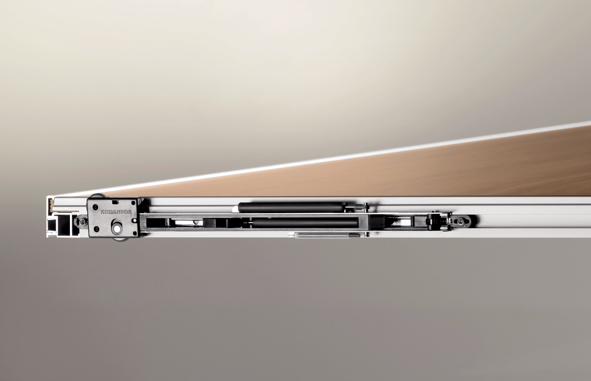 - korpus domykacza jest niewidoczny po otwarciu drzwi, gdyż jest montowany na drzwiach, a nie na torze,