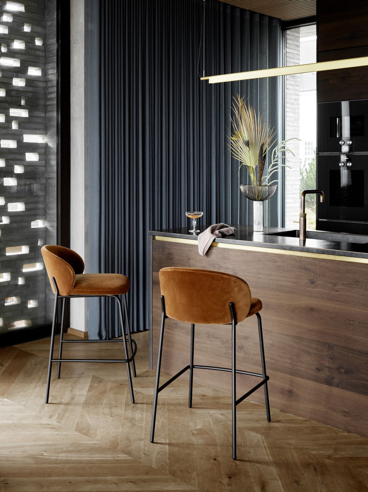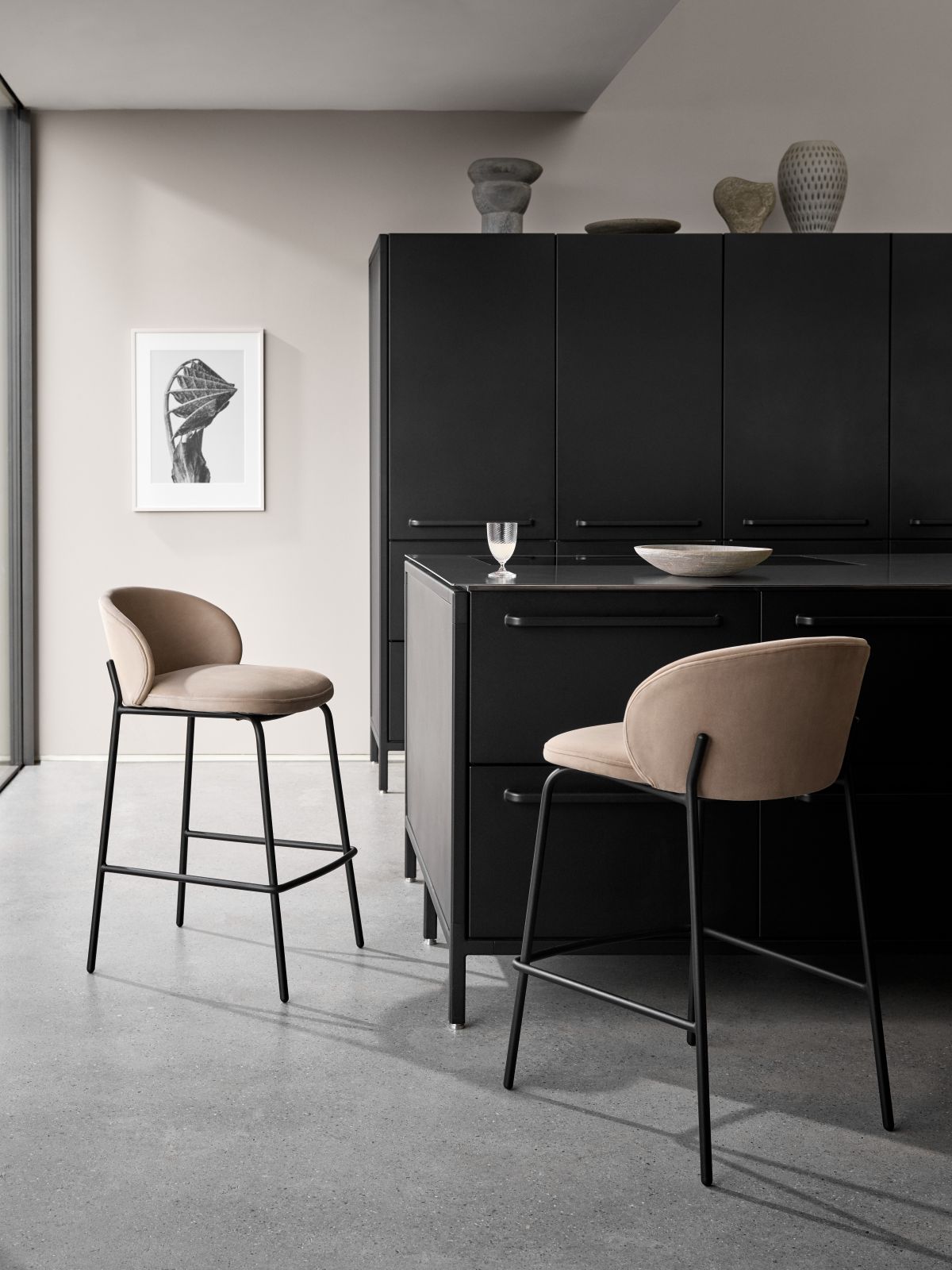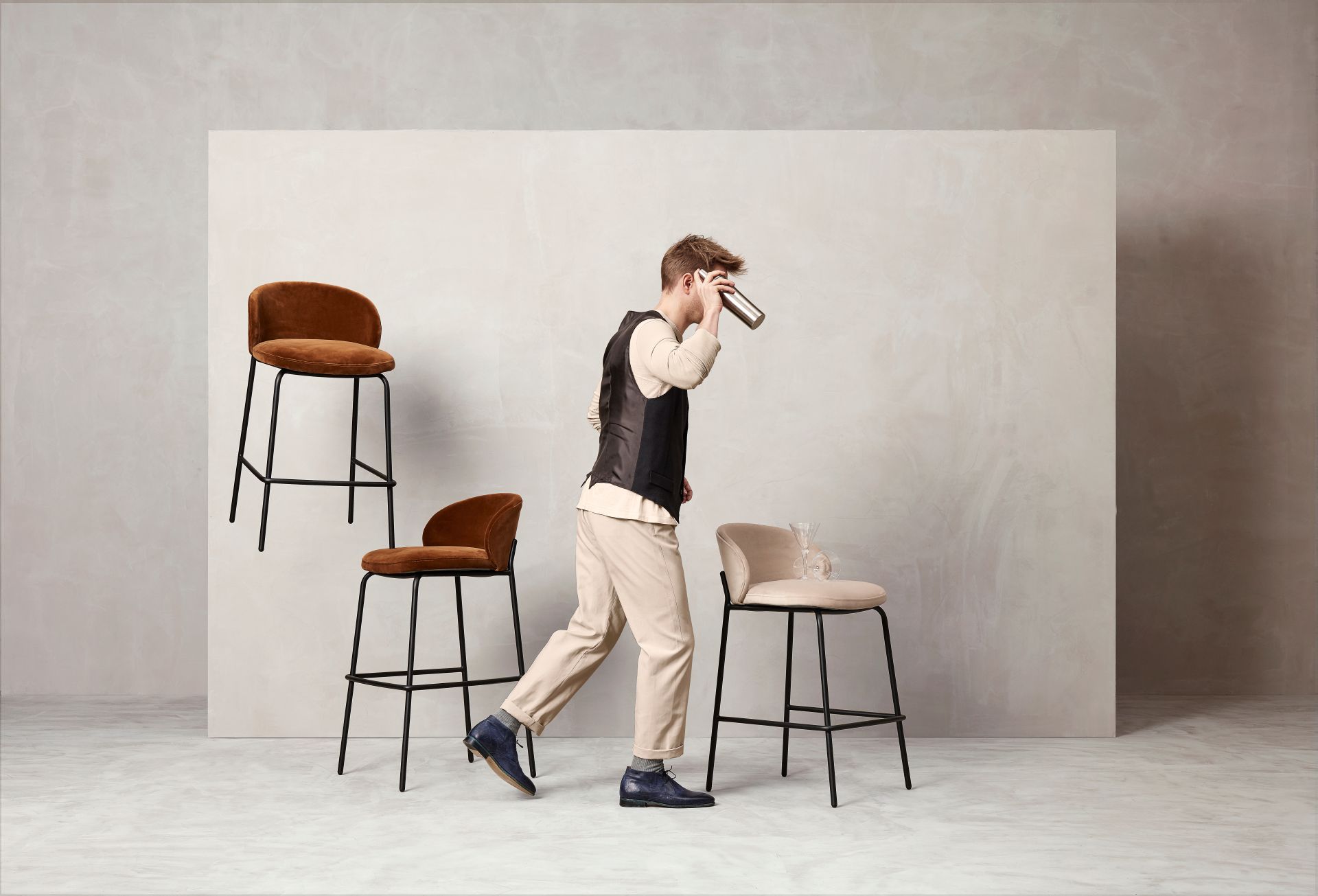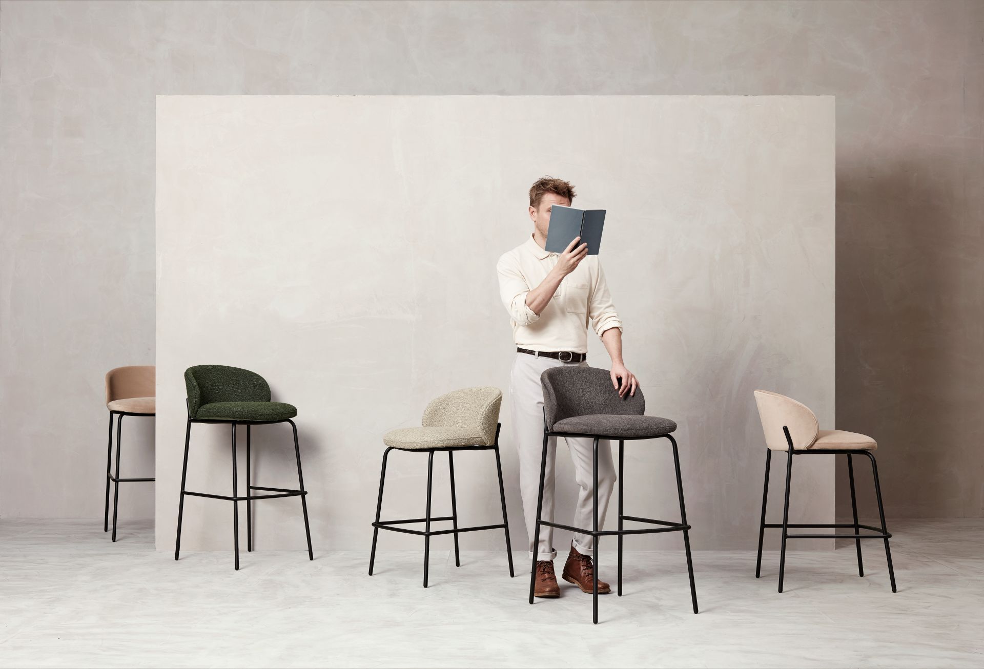 Stołek barowy posiada tą samą otulającą formę, co bestsellerowe krzesło. Idealnie sprawdzi się przy barze lub wyspie kuchennej