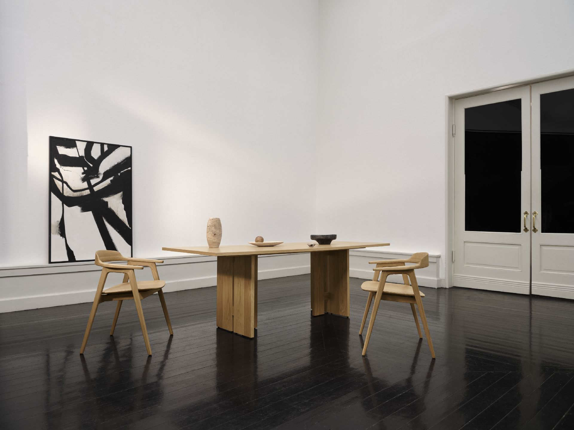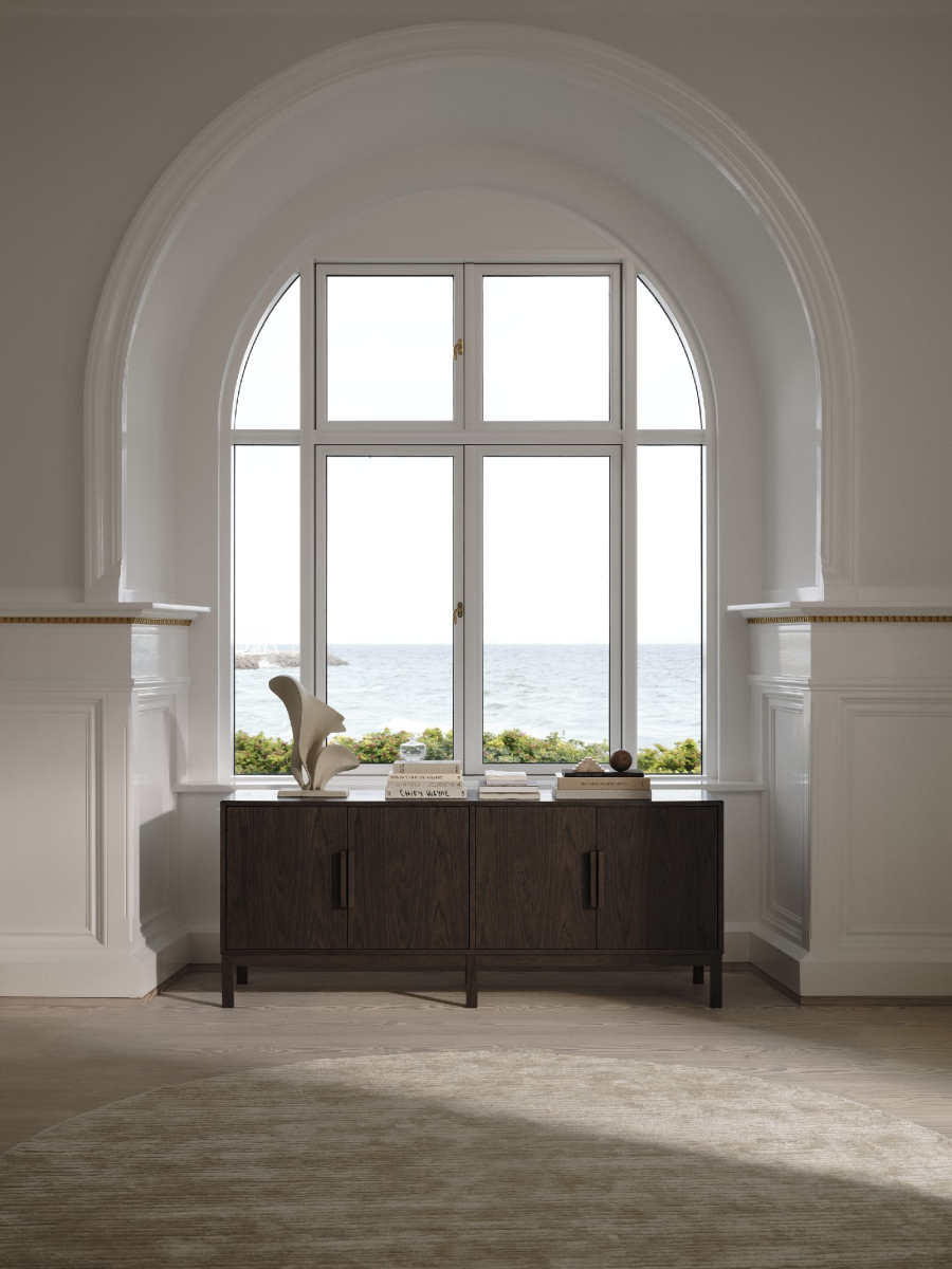 Doświadczenie architektoniczne atelier axo wyraża się w rzeźbiarskich proporcjach kolekcji, od elegancko zwężanych nóg stołu po czystą konstrukcję mebli do przechowywania.