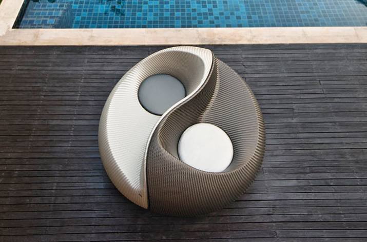Wolne od wszelkich konwencji, Yin Yang ma swoje początki w harmonii. Jej kształt nawiązuje do starożytnej chińskiej filozofii, która płynnie łączy dynamiczne przeciwieństwa kolorów i form. Zaprojektowane przez Nicolasa Thomkinsa dzieło sztuki, powstało dzięki harmonijnej współpracy pomiędzy projektantem i producentem firmą Dedon.