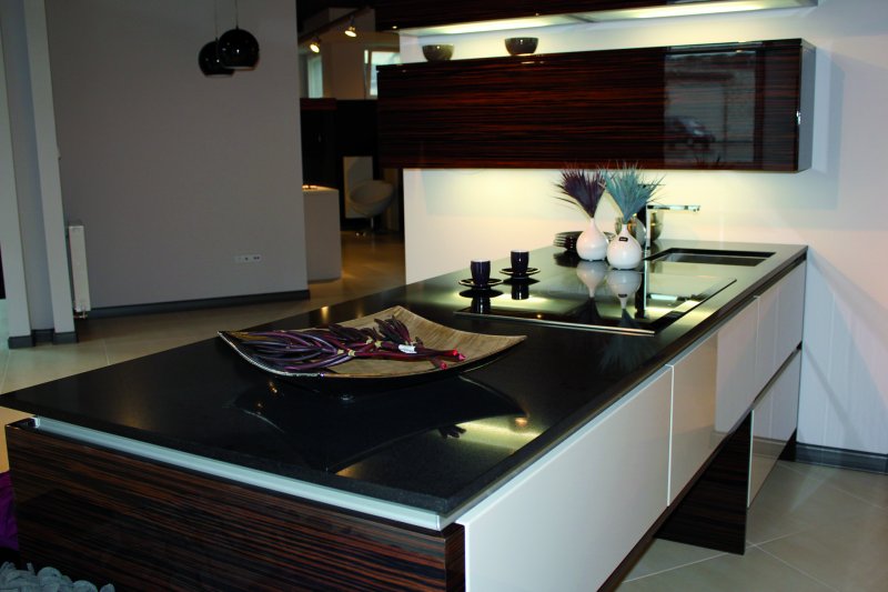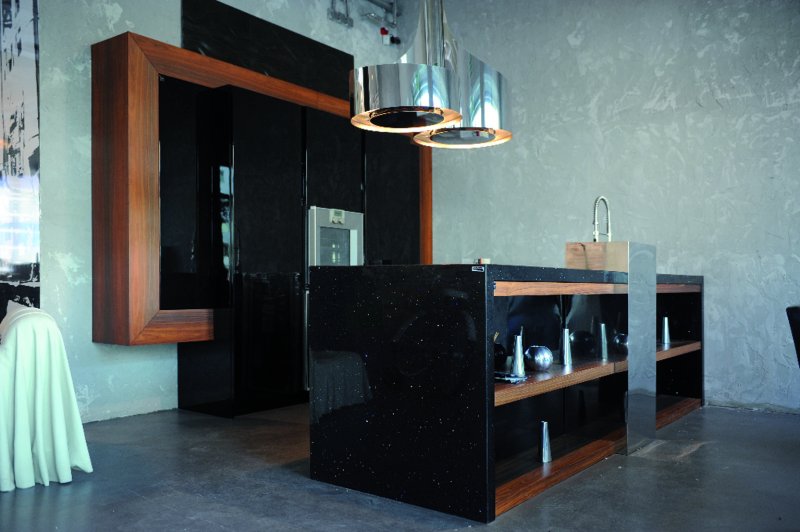 Styl industrialny pełnymi garściami czerpie z możliwości, jakie dają naturalne surowce – nie tylko beton i szkło, ale także różne rodzaje kamienia. Ciekawym pomysłem jest zastosowanie w formie blatów kuchennych czarnych płyt z konglomeratu kwarcowego. Najnowszym trendem są blaty kwarcowe Technistone, wzbogacane kawałkami zwierciadeł, jak Starlight Black lub zawierające delikatnie połyskujące drobinki kwarcu, na przykład Gobi Black. Taka powierzchnia rozprasza światło, dodając surowej aranżacji dynamiki i blasku. Migotliwe i gładkie powierzchnie o czarnej barwie dobrze wyglądają zestawione z elementami wykończenia o kontrastowej fakturze, na przykład chropowatymi, betonowymi ścianami lub kamiennymi posadzkami. Ich chłodna kolorystyka oraz surowy wygląd doskonale łączy się z głęboką czernią, tworząc wyważoną i spójną kompozycję.