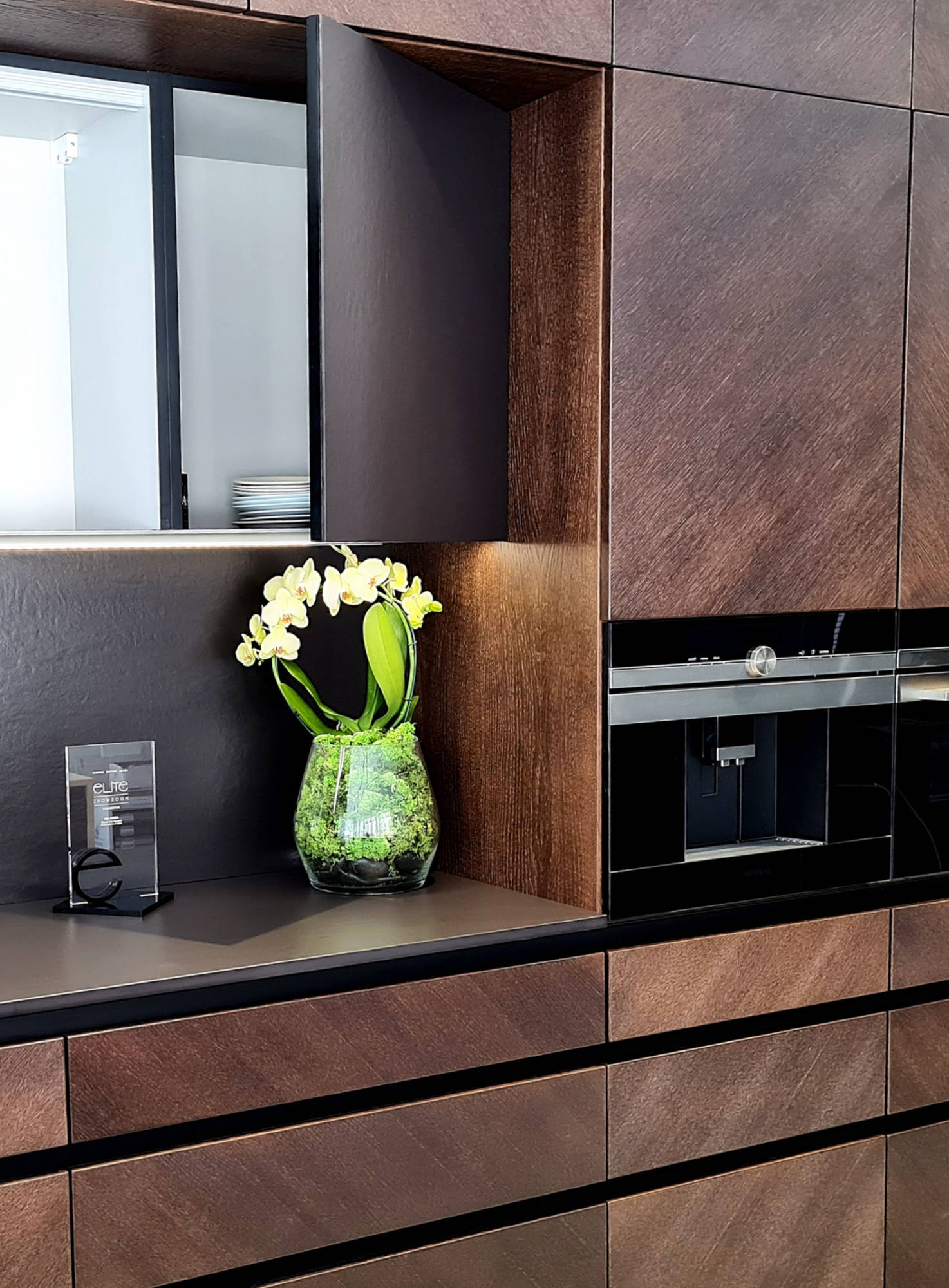 „Dekton Slim jest wyjątkowo odporny na zadrapania, plamy i wysoką temperaturę. W projektach kuchni często wykorzystujemy go np. jako panel między meblami, wypierając stosowane wcześniej panele ze szkła. Slim może być zainstalowany jako jeden wielkoformatowy element, co znacznie podnosi odbiór wizualny zabudowy. Stosowany jako ten sam dekor na okładzinie mebli, panelu między meblami i blacie, uwydatnia najwyższą jakość użytego materiału. Propozycje Cosentino o grubości 4 mm wybieramy do naszych projektów, aby dać klientowi pełne zadowolenie z użytkowania i aby nie odstawać od najnowszych trendów” – mówi Tomasz Opałka, właściciel studia kuchennego OPA MEBEL z Jasła.