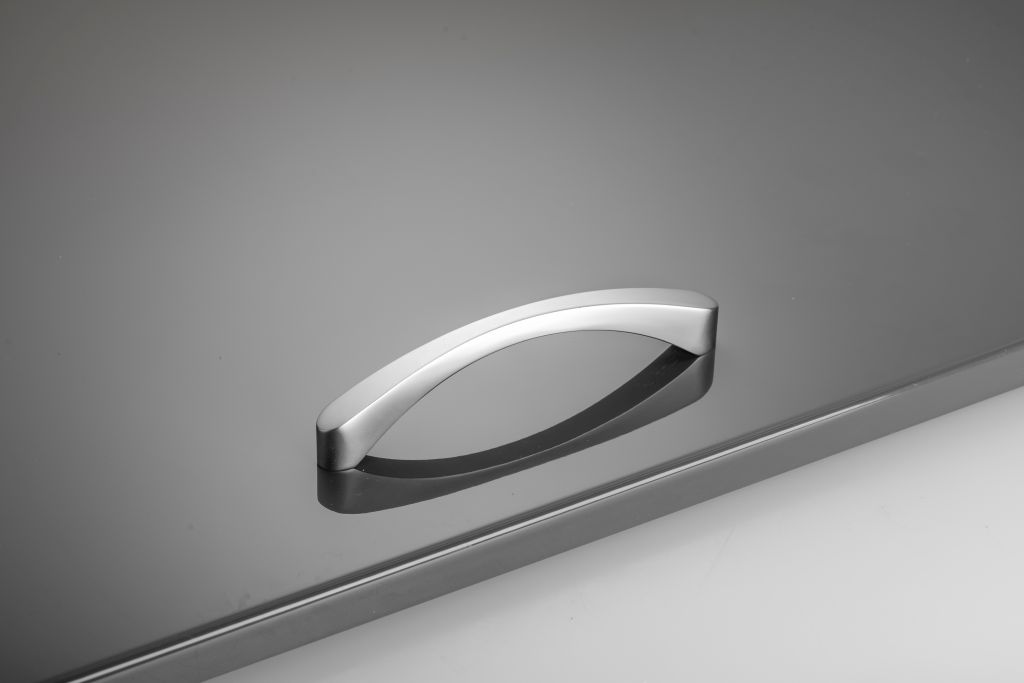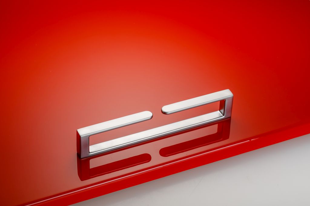Nie inaczej w przypadku frontów lakierowanych. Zupełnie zaskakujący, futurystyczny efekt z nutą glamour osiągniemy, gdy czarne fronty połączymy z połyskującymi uchwytami wykonanymi z kryształów i kamieni szlachetnych, zaś białe fronty odświeżymy dodając do nich nieco kontrastującego szaleństwa – stawiając na uchwyty w klasycznej czerni i modnym antracycie.