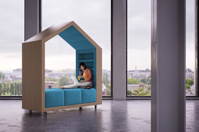 Meble modułowe składające się z segmentów inspirowanych domkami na drzewie, które mogą być połączone ze sobą tworząc pomieszczenie konferencyjne lub umieszczone oddzielnie tworząc spokojne miejsce prace. Zewnętrzna powierzchnia jest białego dębu, który znacznie poprawia ich naturalną estetykę, natomiast żywe barwy zdobiące ich wnętrza, czynią je zabawnymi i atrakcyjnymi miejscami pracy. Meble były zaprojektowane do przestrzeni biurowej w Singapurze.