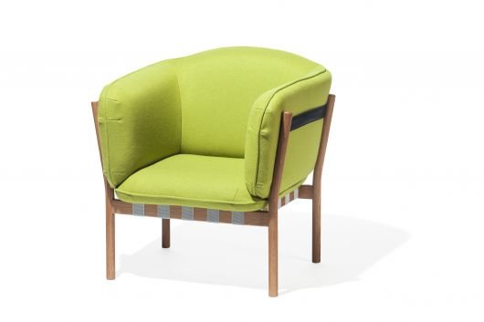 Przytulny fotel zaprojektowany przez Lime Studios zachwyca komfortową wyściółką. Uwagę zwraca element konstrukcji, poprzeczne pasy, które służą jako struktura nośna tapicerki, której zaokrąglone kształty podkreślają komfort. Fotel poza zastosowaniem w kawiarniach, strefach chill out , recepcjach czy poczekalniach, jest także wspaniałym przestrzennym obiektem dekoracyjnym każdego wnętrza.