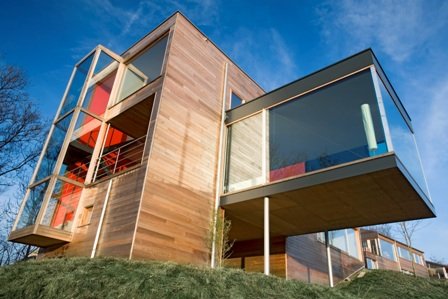Intrygujące wzory oraz barwy różnych gatunków drewna zastosowanych na fasadach nadają budowlom indywidualnego charakteru.