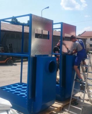 Moduł filtracyjny Filtr EK 24 jest wykonany z blachy ocynkowanej i elementów z blachy malowanej proszkowo. Filtr posiada 24 worki w kształcie rękawa, które są mocowane w stole sitowym za pomocą rozprężnej taśmy (sapring). W górnej części worka filtracyjnego znajduje się dekiel wykonany z tworzywa sztucznego, co zapewnia stałe napinanie worków filtracyjnych podczas pracy filtra. Zastosowanie tworzywa sztucznego jest nowatorskim rozwiązaniem i świetną alternatywą dla wcześniej stosowanych dekli stalowych, które nie sprężynowały, a tym samym – nie napinały samoczynnie worków filtracyjnych. Takie rozwiązanie ma jeszcze jedną zaletę. Otóż dekle z tworzywa stycznego można całkowicie zutylizować wraz z workiem filtracyjnym podczas wymiany, w odróżnieniu od dekli metalowych, które trzeba wyciągać ze zużytego filtra, a następnie montować w nowych workach filtracyjnych, a czasochłonność takiej operacji oczywiście podraża koszt usługi wymiany filtrów.