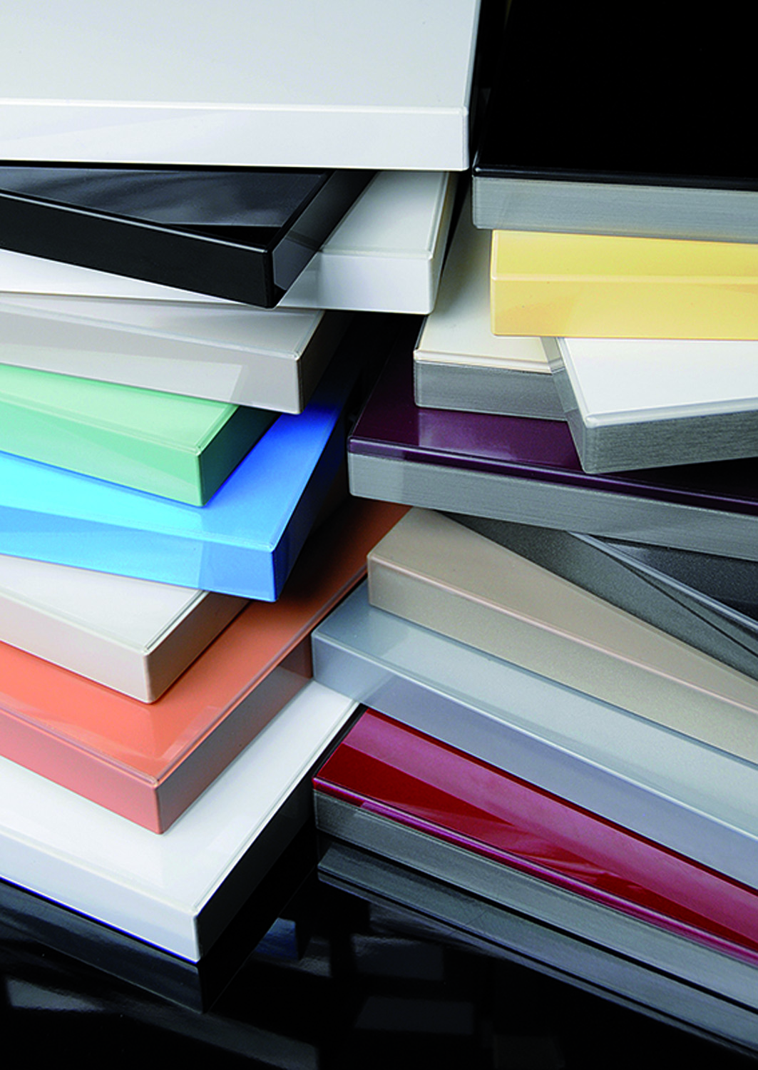 Na szczególną uwagę zasługują fronty akryl-szkło, do produkcji których wykorzystywany jest elastyczny laminat imitujący szklaną powierzchnię. Fronty te mają grubość 20 mm. Wykonane są na bazie płyty MDF 16 mm, która obustronnie pokryta jest specjalną matą akrylową i szklaną (2 x 2 mm). Dzięki zastosowaniu techniki laserowej uzyskiwane są trwałe i bezspoinowe łączenia obrzeża z płytą, co pozwala uniknąć charakterystycznej fugi (fronty sprawiają wrażenie wyciętych z jednej bryły). Wykorzystując w procesie produkcji ponadczasowy materiał, jakim jest szkło, uzyskuje się lustrzaną powierzchnię o wysokim połysku, tworzącą ultranowoczesny, szlachetny i elegancki design, odpowiadający gustom nawet najbardziej wymagających klientów.