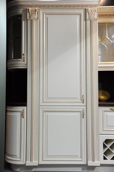 Przy projektowaniu kuchni często pojawia się niewielka przestrzeń, której nie można zabudować pełnowymiarową szafką. Wówczas znajduje zastosowanie cargo. Właśnie do niego mocowane są elementy, których konstrukcja różni się od budowy frontów meblowych. Najczęściej są to płaskie elementy, często zafrezowane, imitujące kształt drzwiczek. Firma Drewpol proponuje ciekawe, nietypowe rozwiązanie dla bardzo wysokiego cargo. Z frezowanym trzonem i wbudowanym drewnianym uchwytem o pionowych żłobieniach. Na jego zwieńczeniu jest element z roślinnym dekorem, zaś u podstawy baza. To Cargo zyskuje dodatkową funkcję, jest kolejnym dekoracyjnym akcentem w kuchni, wzbogaca, urozmaica zabudowę lodówkową, która przestaje być nudnym monolitem.