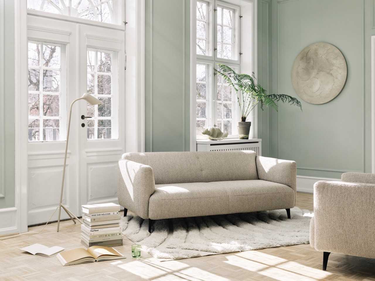 Krzywoliniowe wzory o otulających kształtach zapewniają przyjazność w pomieszczeniach mieszkalnych. W BoConcept kochamy sofę Modena za to, że organiczne kształty i minimalistyczne linie łączą się w swobodnym, współczesnym wyrazie. Aby podkreślić spokojny i elegancki design, idealnie łączy się z paletą kolorów opartą na neutralnych barwach i przyjemnych teksturach, takich jak mieszanka wełny z efektem boucle: tkanina Lazio w inspirowanych naturą odcieniach zieleni, brązu i beżu.