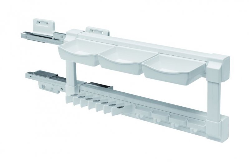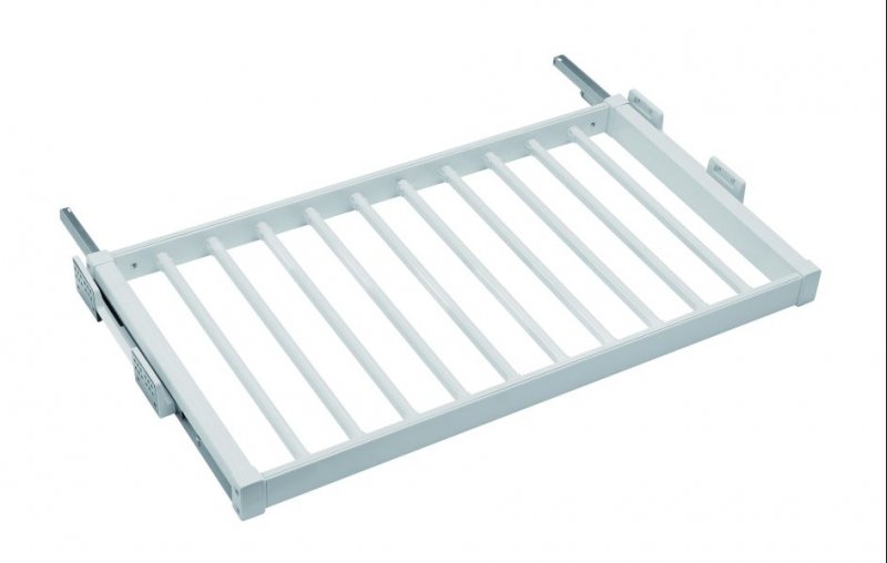 Dzięki prowadnicy z pełnym wysuwem można je wysuwać na całej długości i bezproblemowo sięgnąć po potrzebną rzecz. Dostępne są w wersji z relingami do przechowywania spodni oraz ze specjalnymi zabezpieczeniami do umieszczania wieszaków naramiennych.