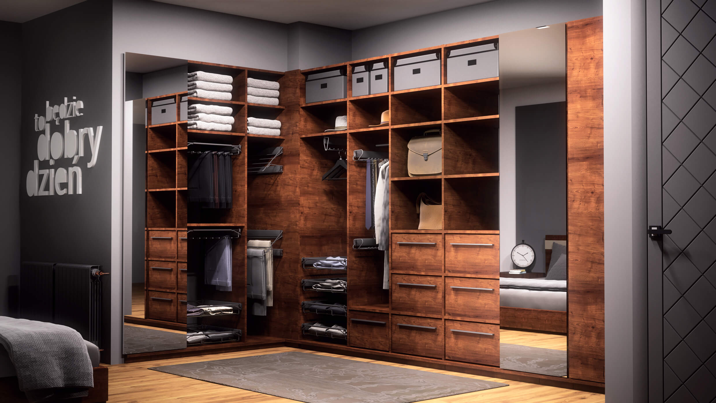 Aktualnie do garderób firma Nomet proponuje kilkadziesiąt różnorodnych elementów, za pomocą których z łatwością można zagospodarować każdą szafę według indywidualnych potrzeb. System spójnie zaprojektowanych szuflad, wieszaków na poszczególne części garderoby, półek na buty, koszy na bieliznę itd. pozwala na dowolną konfigurację przestrzeni i ułatwia jej organizację. Koszule, marynarki, spódnice, spodnie, płaszcze i dziesiątki innych elementów stroju – wszystko jest uporządkowane, a jednocześnie doskonale widoczne i łatwo dostępne.