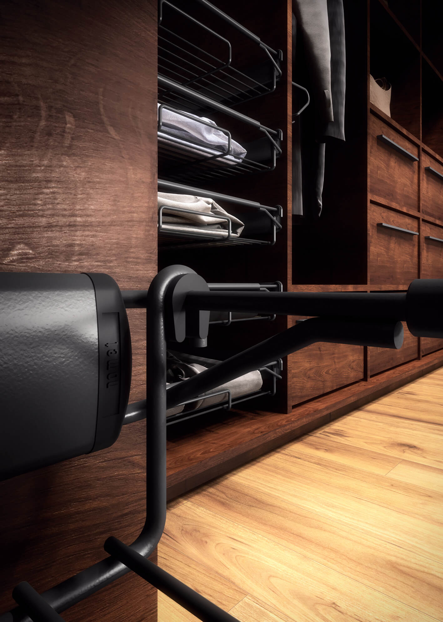 Toruńska firma Nomet w ostatnich latach intensywnie rozwija produkty stanowiące wyposażenie szaf do garderób. Niemal co roku w tej grupie pojawiają się nowe rozwiązania techniczne i funkcjonalne, a sprawdzone wyroby, obecne już na rynku, są rozwijane i udoskonalane.