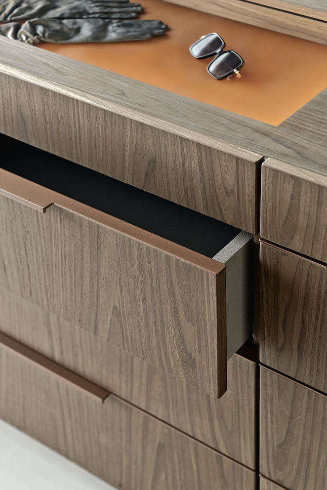 Nowa garderoba ZAJC składa się z trzech elementów, tworzących harmonijną, elegancką kompozycję. Spaja ją ten sam rodzaj forniru, a także detale wykonane ze skóry oraz metalu w kolorze złota. Model obejrzeć można w poznańskim showroomie tej marki