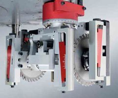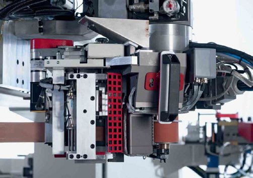 Nowatorska jest konstrukcja wielowrzecionowego agregatu wiertarskiego obejmującego 21 lub 24 wrzeciona, z agregatem do wykonywania rowków, z osobną osią Z. Wrzeciona pracują w zakresie obrotów 6000-9000 min.-1 Agregat wiertarski można konfigurować pod kątem wierceń pionowych i poziomych, w dwóch układach przekładni wiertarskich, z różną ilością wrzecion pionowych i poziomych.