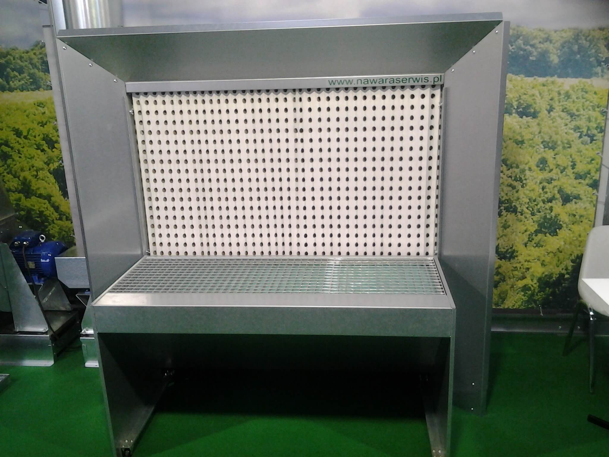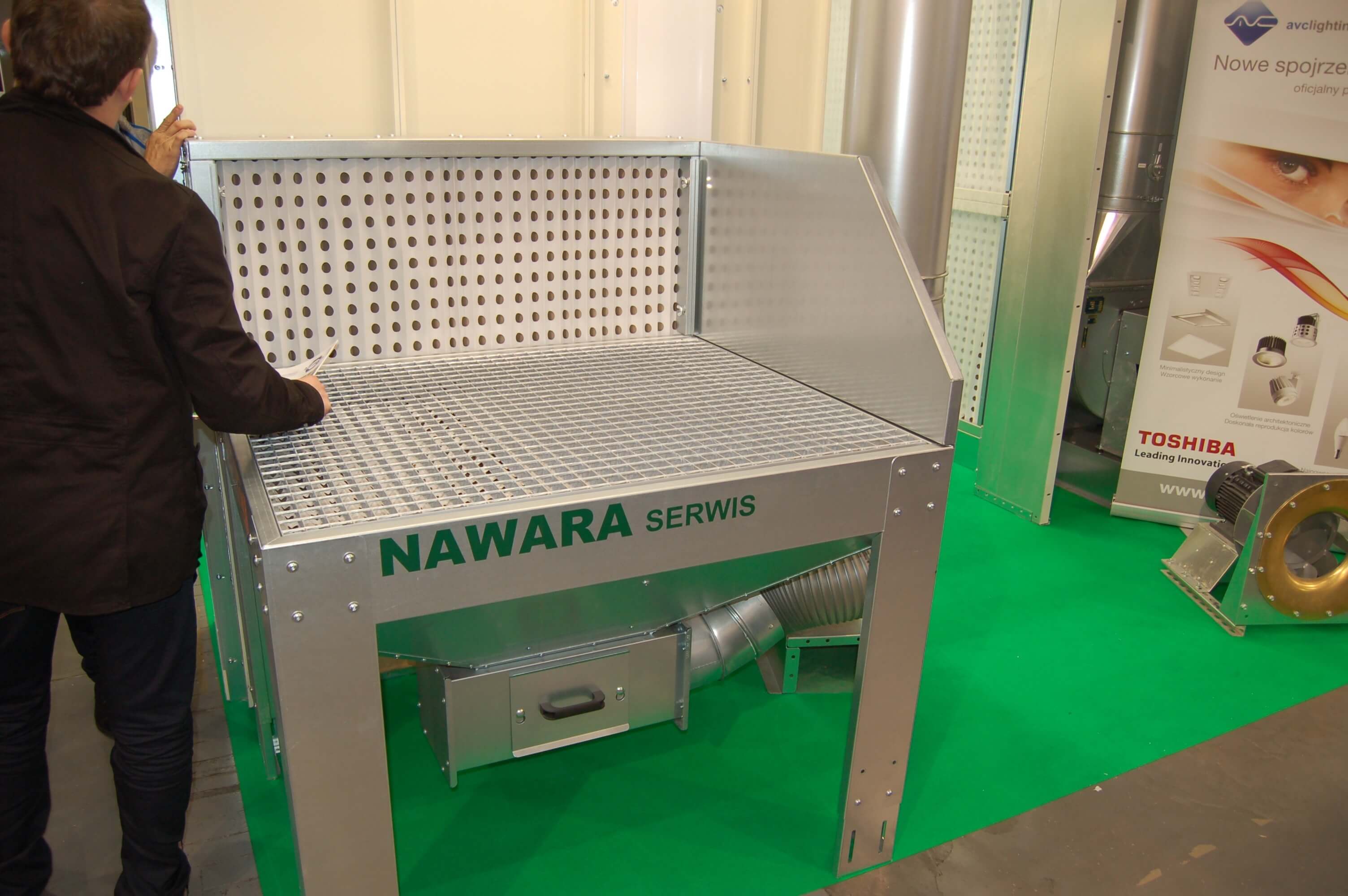 Innym prezentowanym na stoisku Nawara Serwis rozwiązaniem do odciągu klejów wodnych były stoły wyciągowe w kilku rozmiarach, wyposażone w odciąg poziomy i pionowy oraz skuteczny system filtracji powietrza.