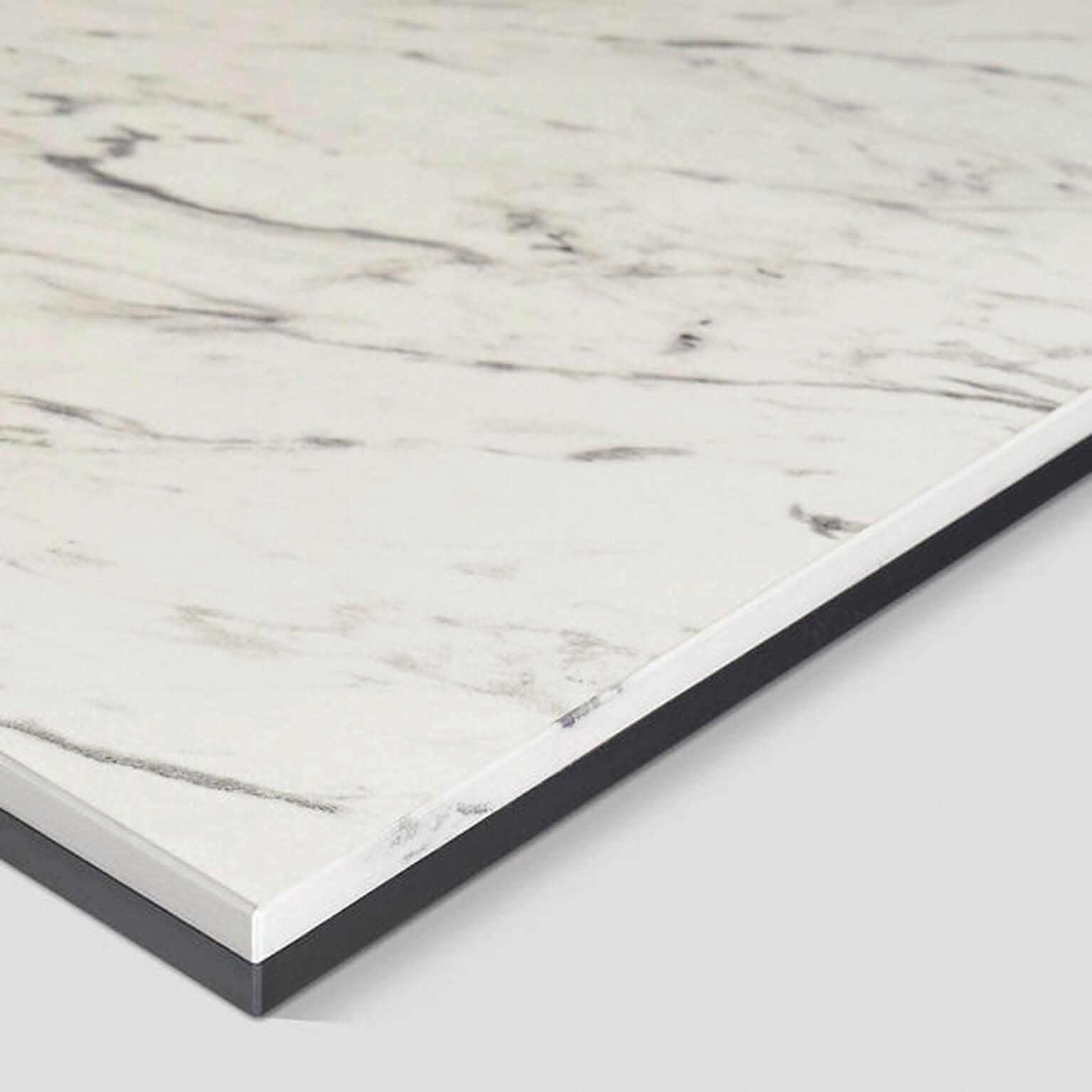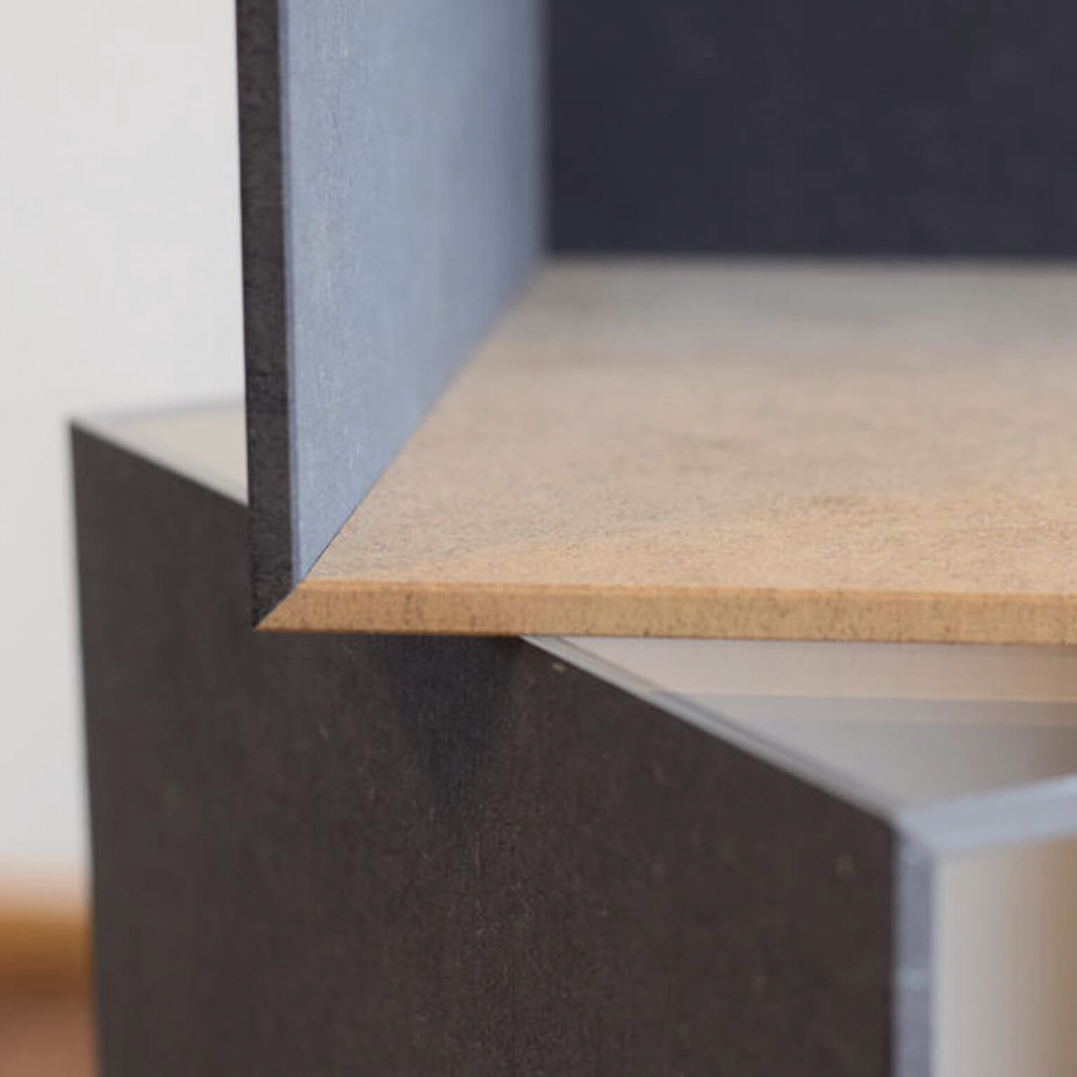 Płyty lakierowane PerfectSense o matowym wyglądzie marmuru i Due Edges są produktami harmonijnie do siebie dopasowanymi. Płyty są dostępne w jasnym lub ciemnym marmurze – obie propozycje mają elegancki wygląd i sprawiają przyjemne wrażenie dzięki matowej, ciepłej powierzchni. Ich dopełnieniem są dwa innowacyjne obrzeża duo: duo edge F8922 C1 z białego, który ma bardzo filigranowy wygląd marmuru oraz duet edge F8924 C1, który łączy naturalną reprodukcję drewna z reprodukcją czarnego marmuru.