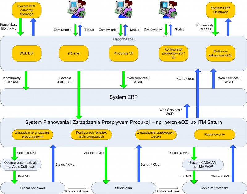 To system klasy PPS, służący do zarządzania przebiegiem procesów produkcyjnych. Zlecenie, złożone przy pomocy jednego z powyżej wymienionych systemów bądź wprowadzone ręcznie przez pracownika firmy, jest konwertowane na zestaw formatek i operacji technologicznych z przypisaniem ścieżek technologicznych, a następnie uwalniane do produkcji i śledzone dzięki systemowi kodów kreskowych oraz infokiosków ze skanerami umieszczonych na poszczególnych gniazdach produkcyjnych. Rozwiązanie to pozwala na sprawne planowanie, śledzenie i raportowanie produkcji, reagowanie na potencjalne sytuacje awaryjne, a także daje możliwość automatycznego informowania klienta o statusie jego zamówienia.