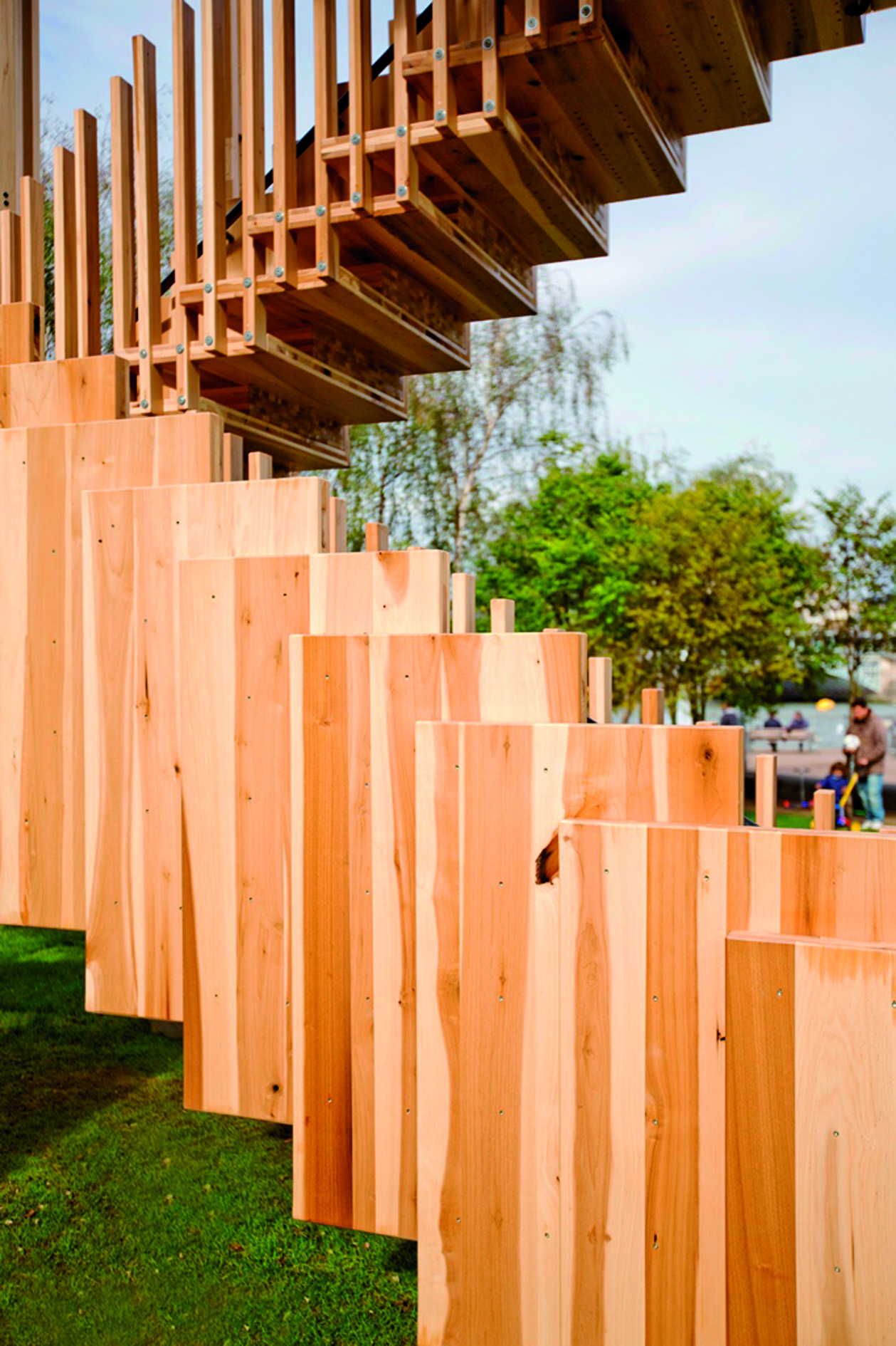 Ze względu na wymiary konstrukcji ilość węgla zmagazynowanego w drewnie jesionu amerykańskiego użytego w tym projekcie to aż 1450 kg. Pomimo energochłonnego procesu obróbki termicznej drewna i wykorzystania licznych metalowych elementów całkowity ślad węglowy tego projektu jest mniejszy i wynosi 1084 kg.