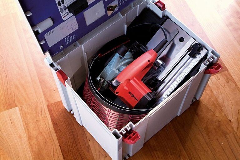 Prowadnicę można łatwo zdemontować i używać jej jak normalnej pilarki. Wyposażona w samochowający się klin Flipkeil pozwala na wykonywanie cięć zanurzeniowych do głębokości 40 mm. Można pracować nią z wolnej ręki bądź przy szynie prowadzącej, która również jest jedyna w swoim rodzaju, ponieważ można zwinąć ją i schować do systenera!