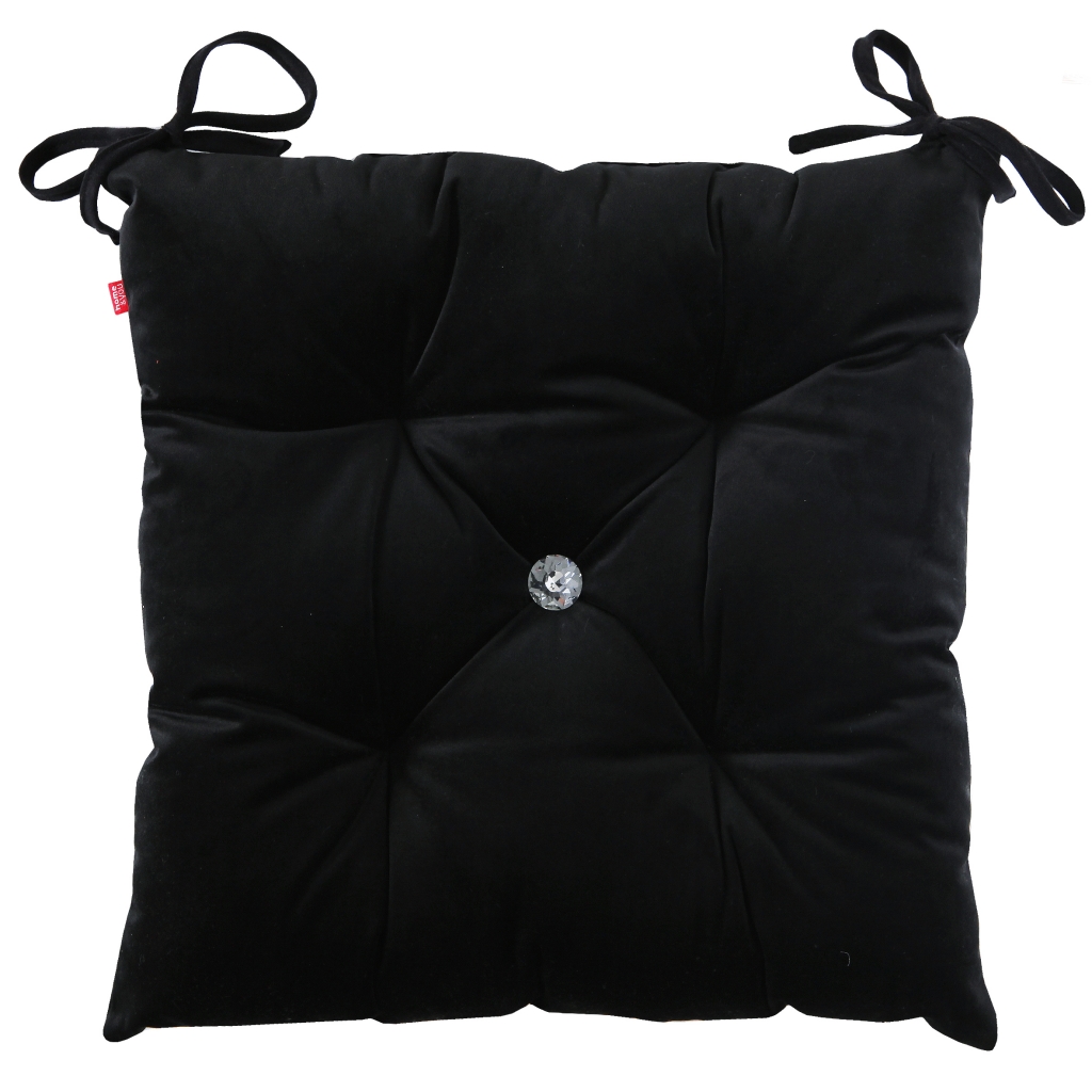 Myśląc o wygodzie w kuchni warto postawić na wyposażenie krzeseł w wygodne siedziska lub miękkie poduchy. Te uszyte z czarnej tkaniny w białe grochy lub całkowicie czarny model ozdobiony diamentem, zagwarantują komfort podczas posiłków doskonale uzupełniając czarno-białą aranżację.