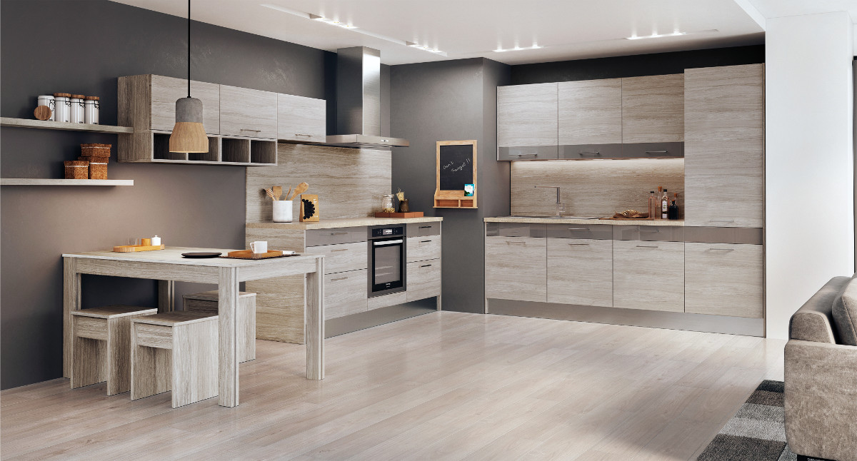 Funkcjonalny układ szuflad to nie jedyny atut systemu KAMduo ML. Meble zachwycą przepięknymi, nowymi dekorami: buk jasny i dąb szary, które zestawiono z akrylem w wysokim połysku. Do wyboru są trzy warianty kolorystyczne: uniwersalny biały, modna szarość i prestiżowa czerń.