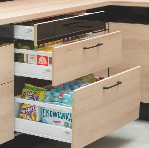 Dotychczas funkcję przechowywania w kuchni pełniły szafki, obecnie coraz częściej wykorzystuje się szuflady. Jest to najbardziej ergonomiczny, ale i bardzo wygodny sposób przechowywania. Pełen wysuw, gwarantuje komfortowy dostęp do zawartości i pozwala łatwiej odszukać produkty nawet w głębi szuflady. Dzięki systemowi cichego domykania, w które wyposażone są szuflady, nie usłyszymy irytującego hałasu frontu trzaskającego o korpus szafki.