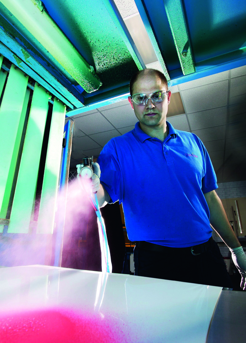 Natrysk klejów wodnych umożliwił przeprojektowanie kabin natryskowych, by odciągane powietrze było zawracane do hali produkcyjnej, co daje oszczędności w ogrzewaniu i lepsze warunki pracy personelu.