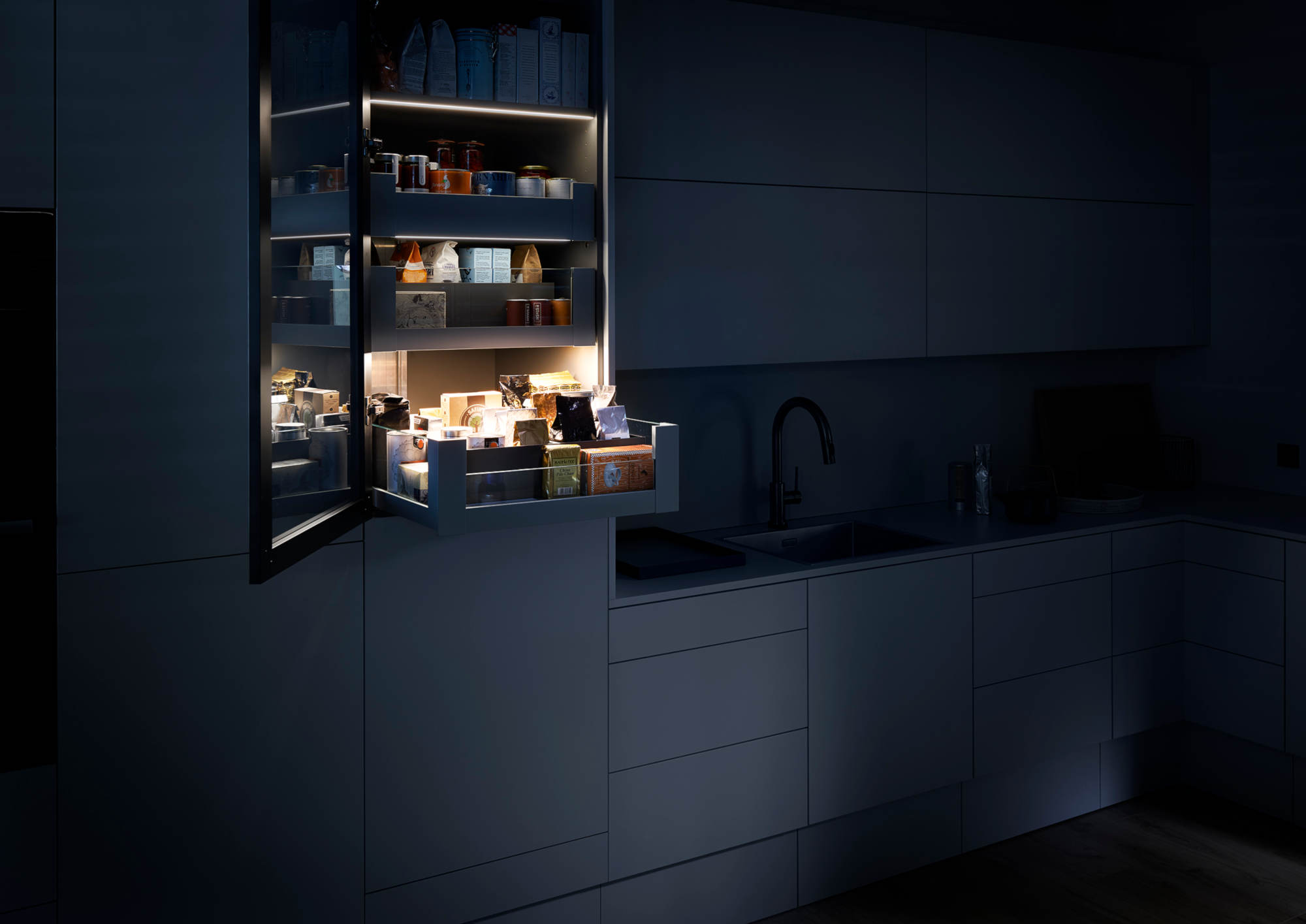 - Podświetlenie mebli ma wymiar funkcjonalny, ponieważ zawartość mebli staje się dobrze widoczna oraz emocjonalny, tworząc nastrojowe kulisy świetlne.
