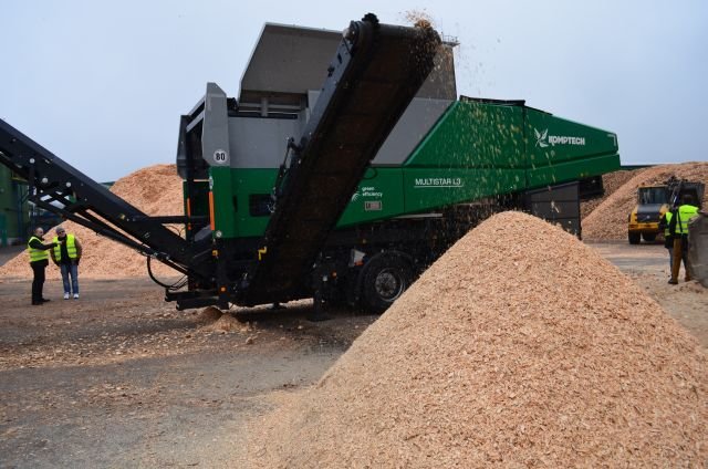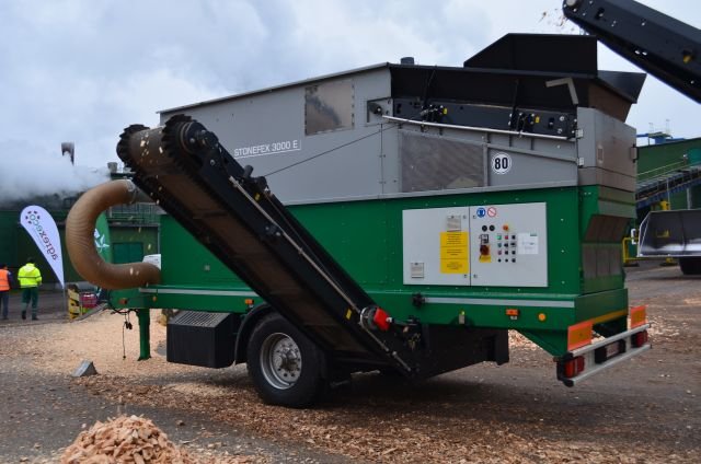 W ramach pokazu zaprezentowano wysoką wydajność i selektywność przesiewacza gwiaździstego MULTISTAR L3, dzięki opatentowanemu systemu czyszczenia CLEANSTAR. W jednym przejściu odsiano frakcję drobną (0-10/25 mm) oraz frakcję nadsitową (powyżej 120/150 mm). Kontynuując proces produkcji paliwa z biomasy frakcja średnia skierowana została na separator kamieni STONEFEX, na którym zostanie ona doczyszczona z materiałów inertnych aż do 90 % przy wydajności 100 m3/h.