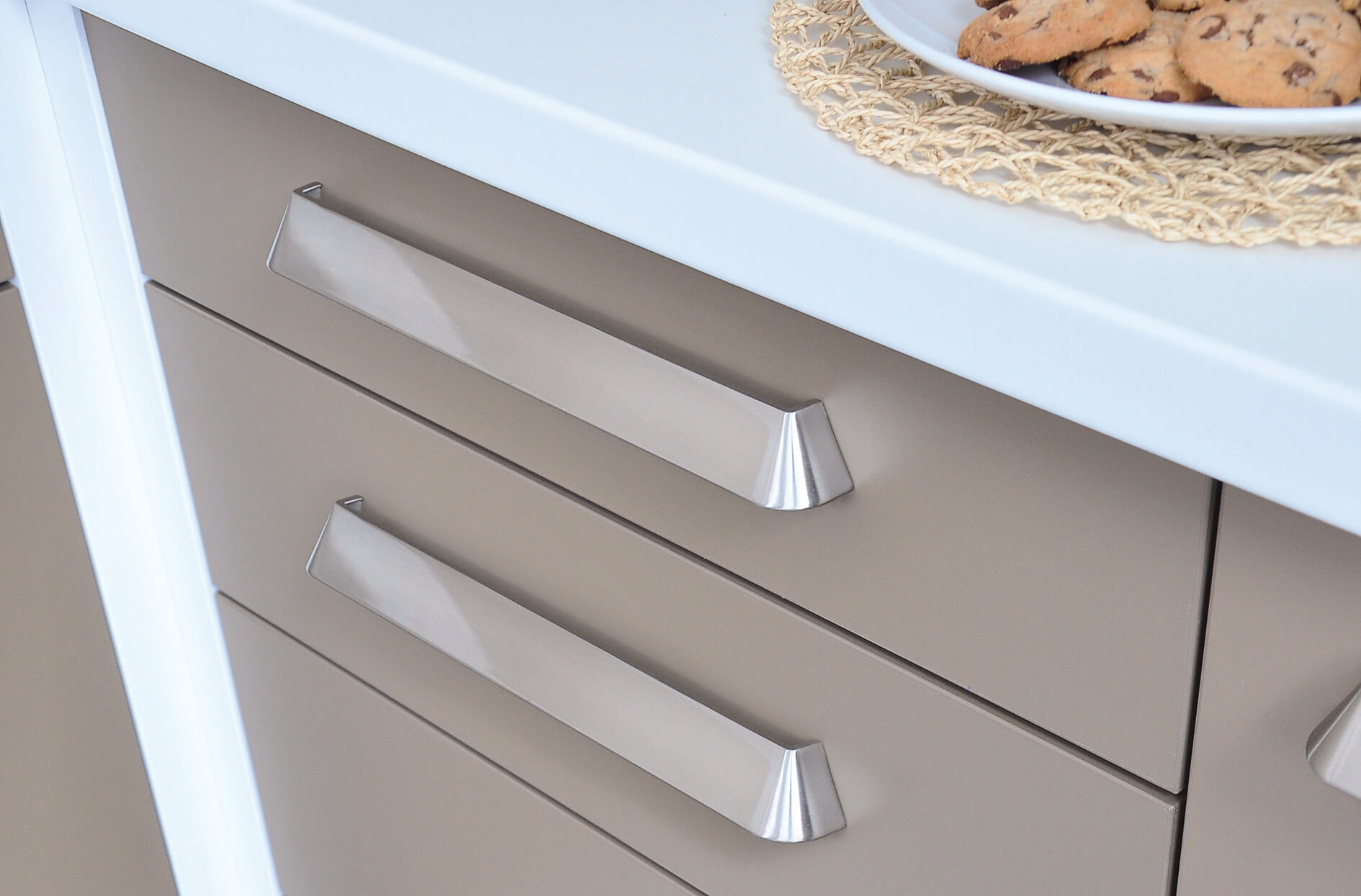 Niebanalny uchwyt metalowy, którego stopki i część pochwytowa stanowią jedność, a odpowiednie profilowanie całości umożliwia komfortowy pochwyt i zapewnia oryginalny wygląd mebla. Produkt jest dostępny w dwóch długościach: 184 mm (rozstaw 160 mm) i 312 mm (rozstaw 288 mm) oraz dwóch wersjach kolorystycznych: chromie błyszczącym (ZN1) i efekcie stali szlachetnej (ZN21). Wysokość i szerokość uchwytu są zbieżne i wynoszą 29 mm. Jednostka opakowaniowa zawiera 10 sztuk.