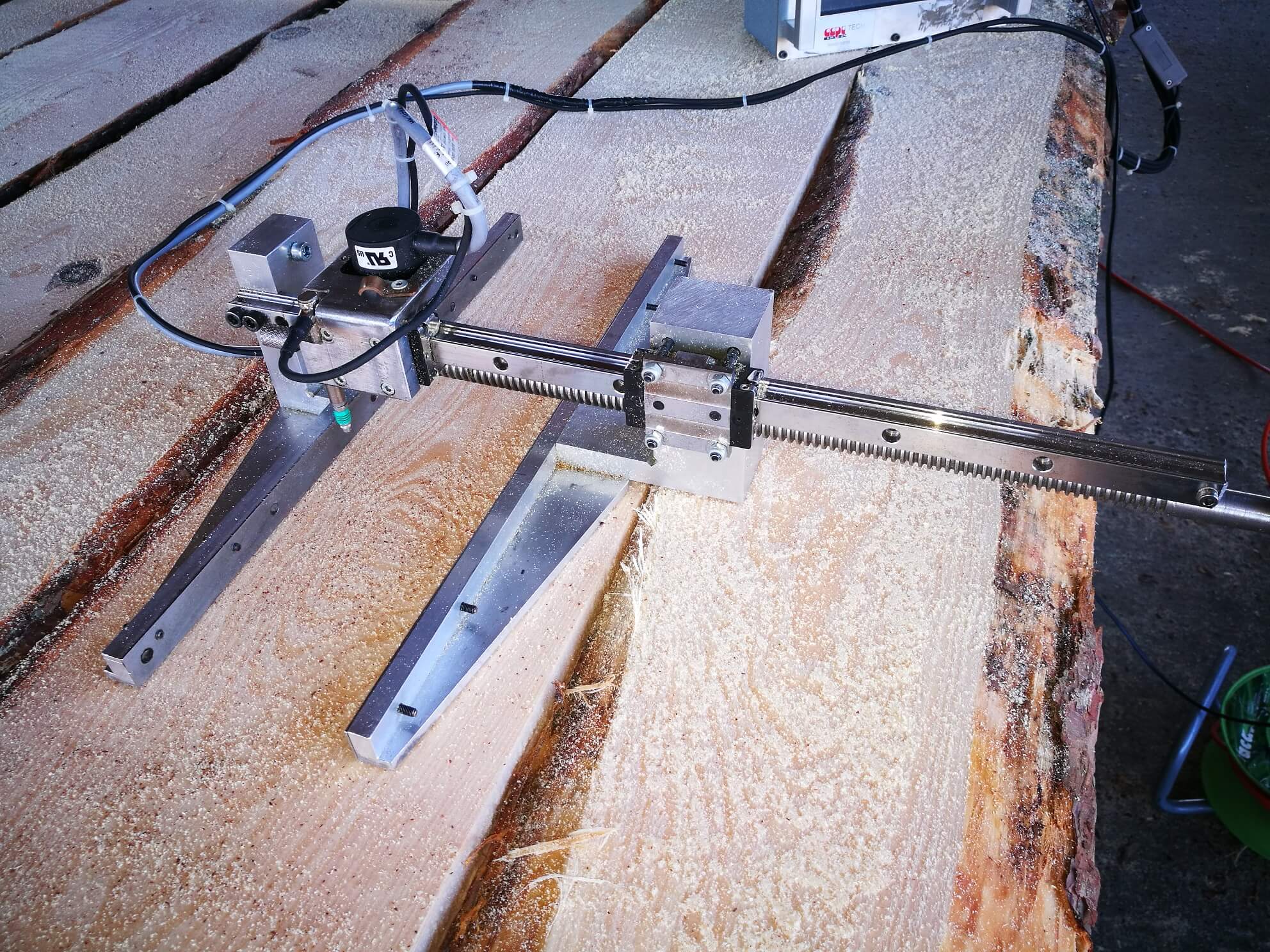 11-IMG_20170801_091615Urządzenie umożliwia identyfikację zarysu koła taśmowego bezpośrednio w pilarce. Cechuje się prostą budową, niewielkim gabarytem i ciężarem. Ze względu na wymagany prawidłowy sposób naprężania pił taśmowych, jego wartość powinna być dostosowana do rzeczywistego zarysu koła. Bardzo pomocny jest cyfrowy zapis, dający wygodną formę prezentacji rzeczywistego zarysu koła pilarki taśmowej.