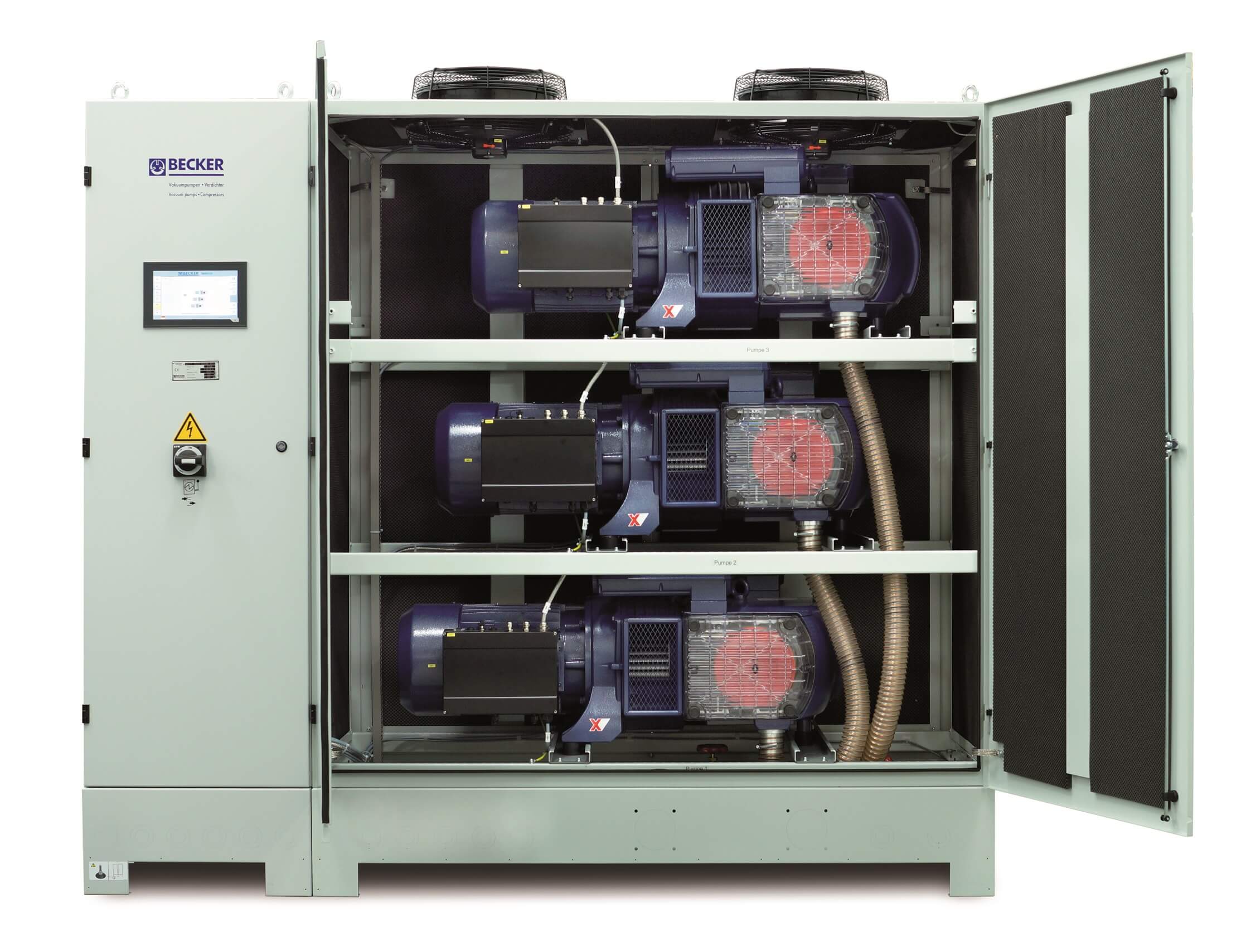 7-VACS - zdjęcie produktuPróżniowo-ciśnieniowa jednostka centralna VACS z technologią VariAir to inteligentne i kompaktowe rozwiązanie, stanowiące optymalne i energooszczędne źródło zasilania próżni i nadciśnienia w zależności od bieżącego zapotrzebowania. Panel sterujący umożliwia obsługę i pełen monitoring pracy systemu zapewniając regulację w wymaganym paśmie ciśnienia. Urządzenia w systemie VACS wyposażone są w przetwornice częstotliwości VariAir, które umożliwiają płynną i precyzyjną regulacją wydajności pomp, co przekłada się na oszczędność energii. Dzięki odrębnej lokalizacji i kompaktowej zabudowie zredukowany został poziom hałasu i ilość emitowanego ciepła w obszarze roboczym. Dodatkowo system zapewnia możliwość odzysku ciepła.
