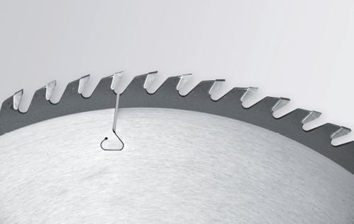 Ulepszona geometria przestrzeni międzyzębowej poprawia także warunki pracy poprzez optymalne odprowadzanie wiórów, co z kolei redukuje hałas. VectorCut są cichsze o około 3 dB(A) od konwencjonalnych pił panelowych.