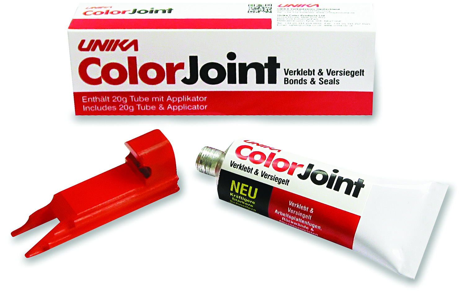 – kolorystycznie dopasowany do blatów/paneli kuchennych dla jednolitego wykończenia; dostępny w dziesięciu podstawowych kolorach, w opakowaniach z aplikatorem w czterech pojemnościach: 290, 150, 45 oraz 20 ml; na zamówienie możliwe jest dostarczenie kleju o określonej barwie;