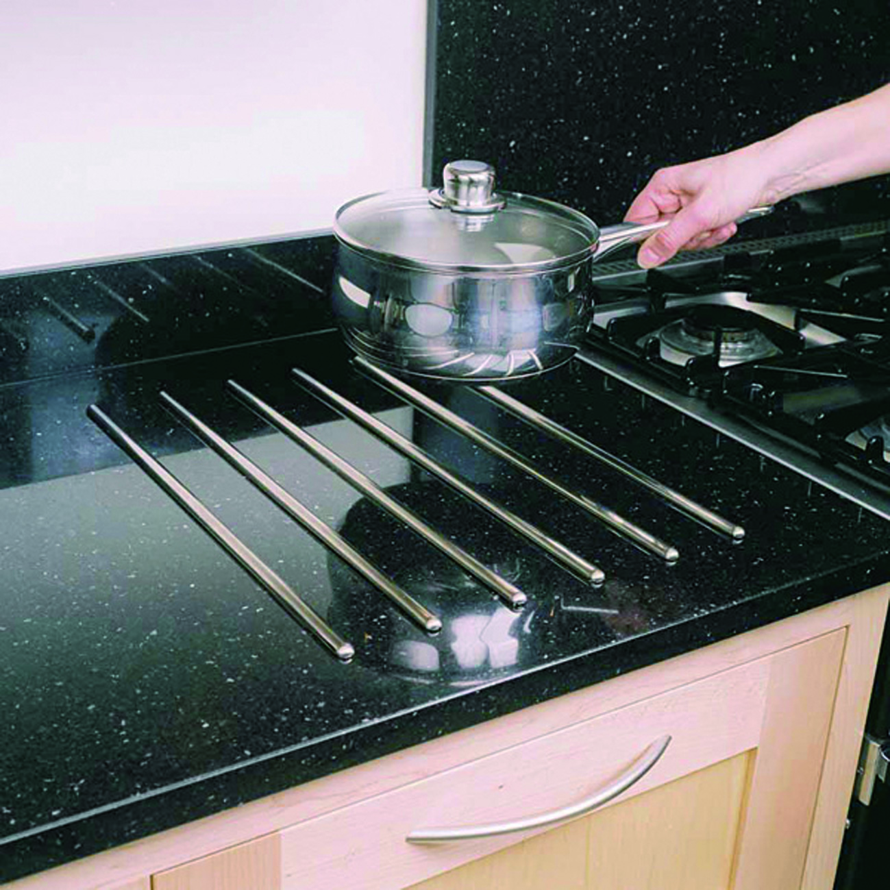 – pozwalają szybko odstawić gorący garnek z płyty grzewczej bez niszczenia blatu;