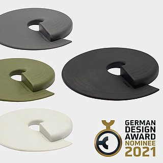 Ten produkt, który zdobył również nagrodę German Design Award 2021, jest naprawdę wszechstronny. Jest to okrągły mały dysk, elastyczny i sprytnie zaprojektowany. Można go wkręcić w dowolną szczelinę drzwiową. Dzięki wznoszącej się powierzchni mocowania idealnie wpasowuje się w szczelinę między podłogą a drzwiami. Ponadto może być on również mocowany jako odbojnik na klamkach drzwi i okien lub stosowany do wyrównania wysokości pod meblami.