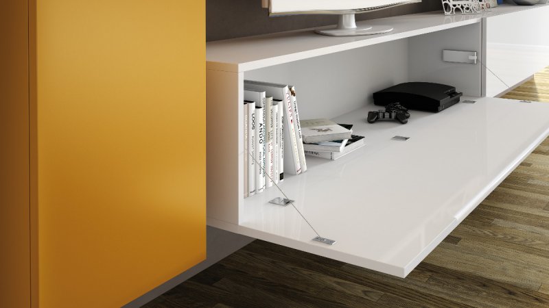 Do drzwi uchylnych istnieje szereg mechanizmów, które mają za zadanie w najprostszej wersji trzymać front w otwartej pozycji, a w bardziej zaawansowanej jeszcze dodatkowo powoli i delikatnie go opuszczać podczas otwierania. W ostatnich miesiącach jednym z najlepszych rozwiązań, które znalazło się na rynku w tym obszarze zastosowań, jest produkt włoskiej firmy Italiana Ferramenta, sprzedawany pod nazwą Link.