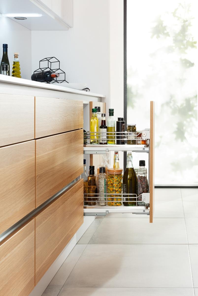 Dobrze zaprojektowana kuchnia to taka, w której każdy centymetr jest wykorzystany. Zagospodarowane są nie tylko wszystkie puste kąty, ale również przestrzenie pomiędzy meblami. W tym celu warto wykorzystać takie rozwiązania, które pomieszczą jak najwięcej potrzebnych przedmiotów.