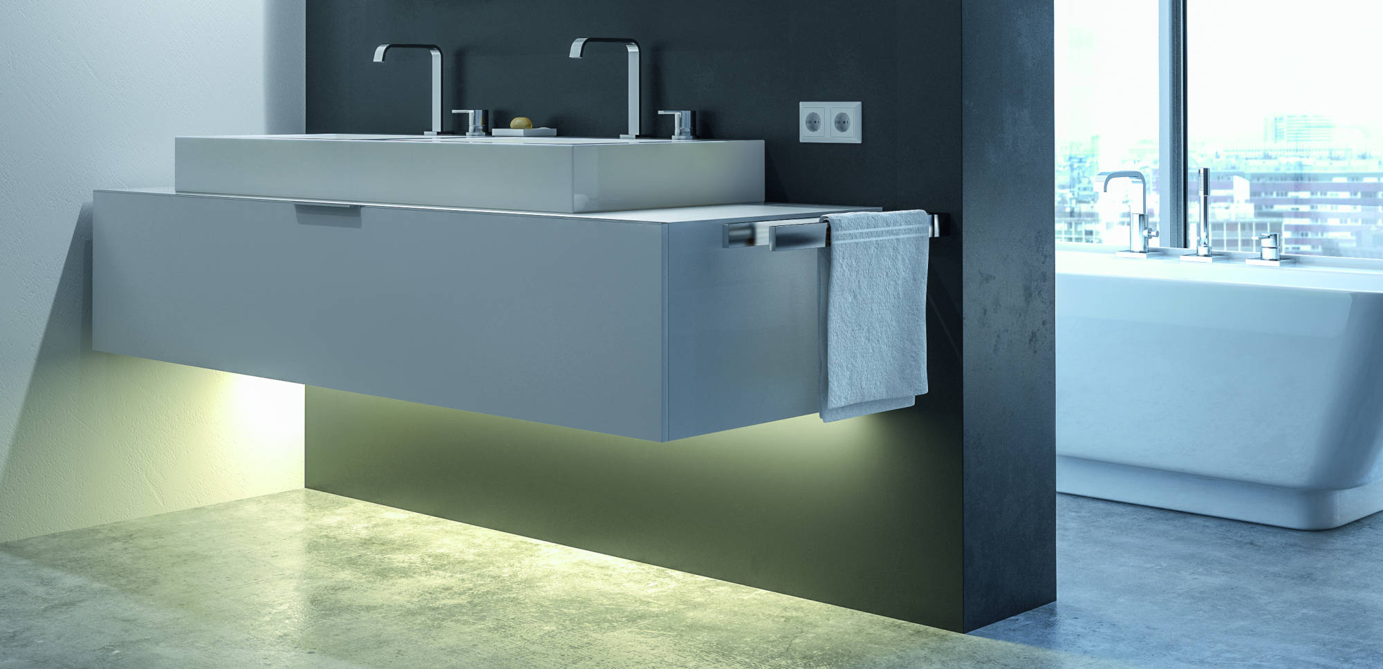 Pozostając przy temacie oświetlenia, warto zwrócić również uwagę nowoczesne rozwiązania technologiczne. To kolejny trend na nadchodzący rok. Łazienka ma być wygodnym i komfortowym miejscem, ułatwiającym życie. Pomóc w tym może np. inteligentne lustro, posiadające funkcję ogrzewania zapobiegającą zaparowaniu powierzchni oraz wbudowany system audio kompatybilny z Bluetooth.