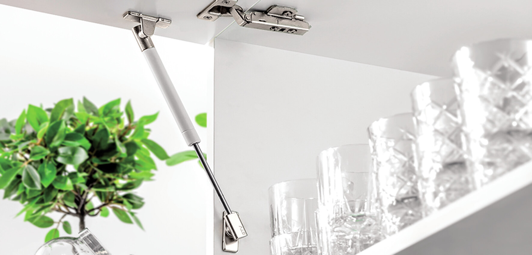 Podnośnik gazowy NEO poza minimalistycznym designem charakteryzuje się również prostym i szybkim montażem bez użycia narzędzi, dzięki czemu można go łatwo wpiąć w mocowanie. Stanowi to duże ułatwienie przy instalowaniu szafek z górnym frontem.