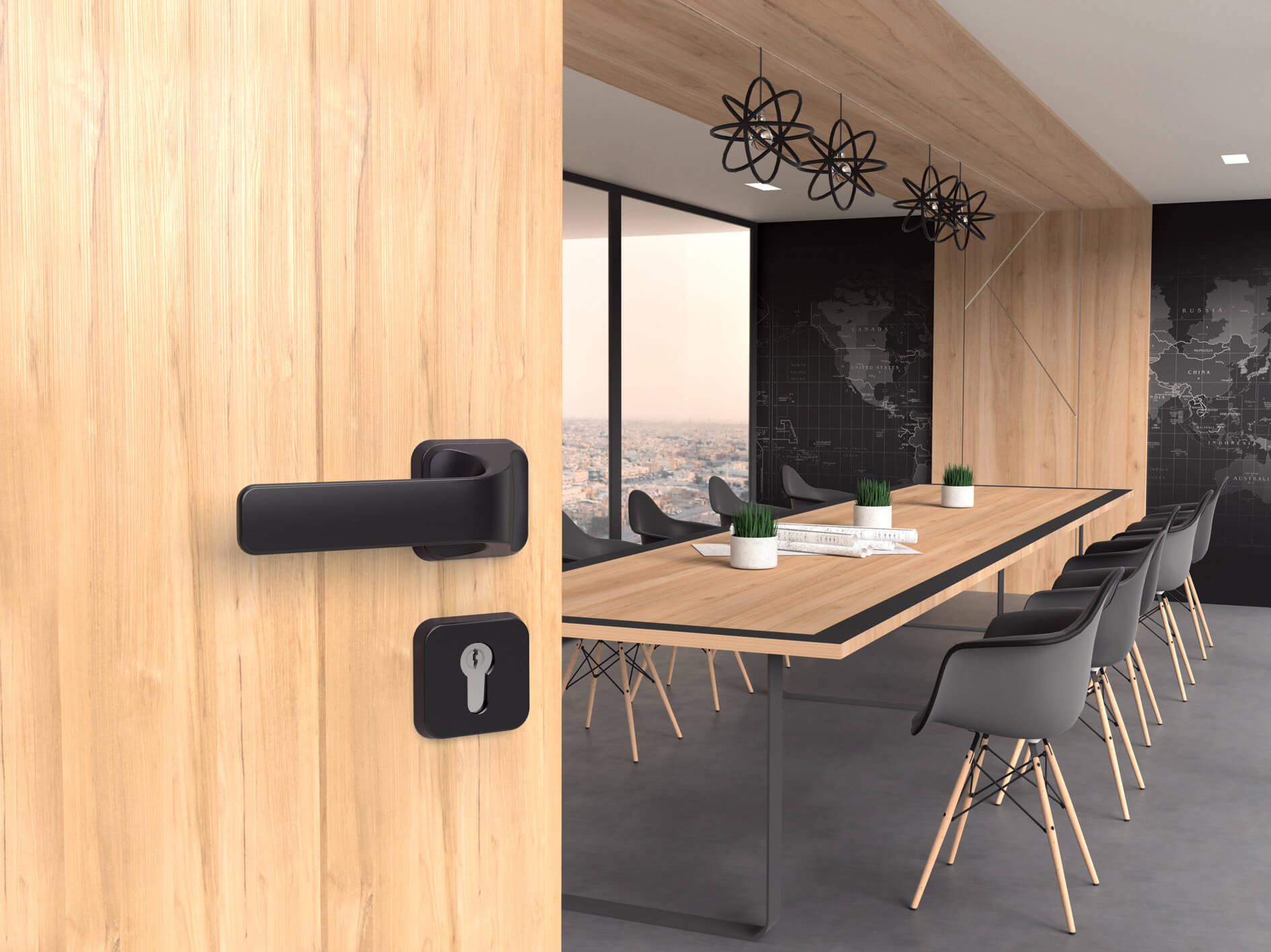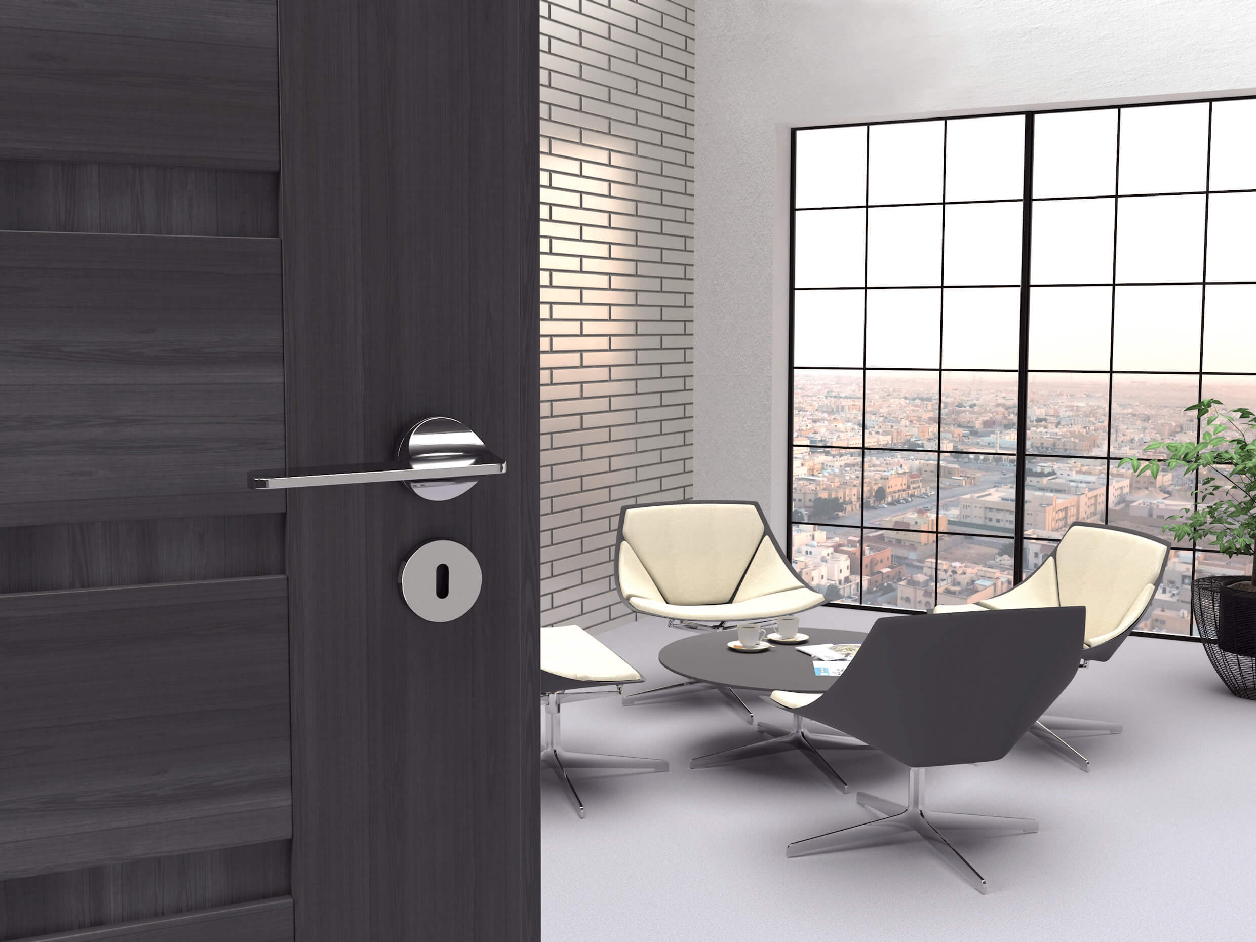Ma wyjątkowy, zgeometryzowany kształt nadający tej klamce zdecydowanego charakteru. Masywna forma rękojeści i kwadratowy szyld mają ten sam rozmiar, dzięki czemu sprawiają wrażenie pojedynczej bryły.